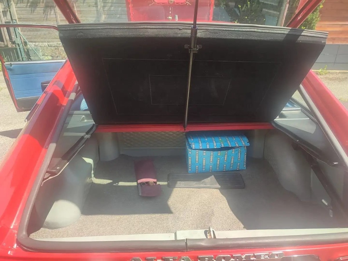 CONDITIONThis 1977 Alfa Romeo Alfetta GTV is in excellent condition, with a restoration level between 1 and 2. It has been in storage since 1984 and remains fully operational. The red exterior paint shines beautifully, while the blue cloth interior adds a unique and elegant contrast. The car is rust-free and accident-free, making it a rare find in such pristine condition. The right door has had slight touch-ups, but otherwise, the vehicle is in its original form.