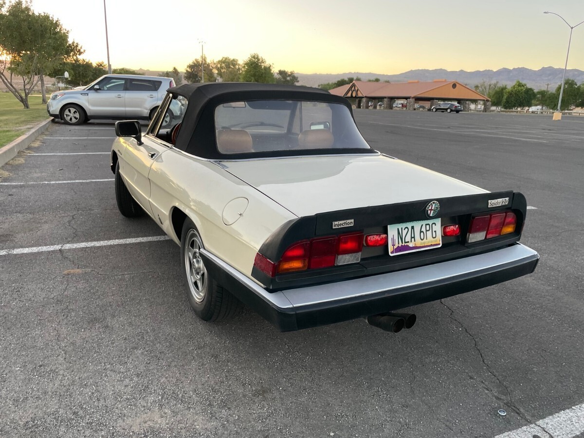 Alfa Romeo: 1984 Spider Veloce 2.0, Cream with 2-tone brown interior w/black soft top, Pininfarina badge, 5 speed manual, excellent condition, fun to drive and a real head turner. (760) 702-4085 or (928) 310-4042.