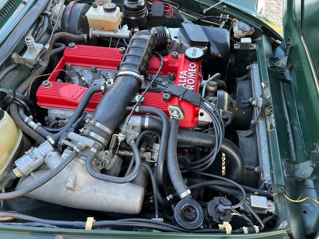 Mechanically, the car runs “GREAT”. Following the recent Valve Job, the car has great pull in all gears and is a real pleasure to drive; what one would expect from an ALFA! No 2nd gear synchro problems or any other gear. Both mirrors work both ways (UP & DOWN AND SIDE TO SIDE). There are no cracks in the dash. AC and heater both working well. Original glass throughout. Newer Bluetooth hands free radio (I don’t have the original radio). The top and rear window are excellent.