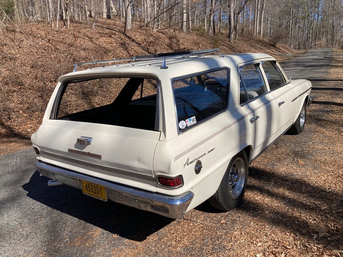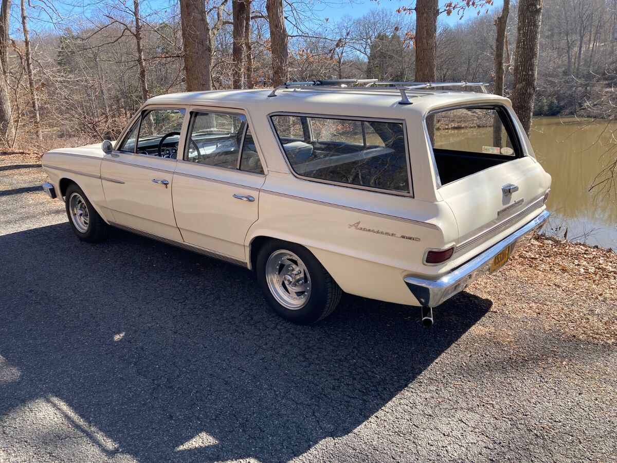 Ready for spring and priced to sell!Hard to find original 1964 Rambler American 330 wagon finished in Frost White with nicely restored factory correct interior (carpet, seats, door panels etc). Collector owned and garaged.I love this wagon and it drives like a dream but I recently went overboard at a car auction and my collection needs some thinning out to clear some garage space.This wagon spent its entire life in North Carolina until 2024 and is rust free. Two prior long term owners kept the car as a weekend collectible. The second owner bought it in 1991 with 35k miles. In 2002 the third owner acquired the car from a dealer with around 60k miles. The current 71k miles is original and true.1964 was the first year for the third generation Rambler American which introduced significant styling and engineering changes. This wagon has the T35 "flashomatic" 3-speed automatic transmission. The engine is the 123 hp, single carburetor 6-cylinder version.*Engine rebuilt at 56,200 miles (valves resurfaced in 2023)*Transmission rebuilt at 66,375 miles*Interior restored with factory original fabric and materials in 2003* receipts included with recordsThe car now rides on 14" American Racing wheels. Tires are BF Goodrich Touring P185 75R with (2012 date codes) but are in excellent shape showing 80-90% tread.This particular wagon has the very cool roll down tailgate window, working original factory a/c (compressor replaced), original radio, lap belts... even the original chrome under dash tissue box. Excellent factory chrome roof rack. All gauges work but the fuel gauge is not accurate. All glass is excellent, especially the windshield (which may have been replaced at some point). All windows roll up and down as they should. Chrome is very good. Headliner is excellent.The car starts right up and drives like a dream. No smoke or leaks. Brakes are excellent and the car stops true and straight with no pull to either side. Recent battery, tune-up, oil and filter change etc. the freshly rebuilt transmission shifts smoothly with no clunking or hesitation.Nice respray of the original Frost white is about 20 years old and shows nicely. There is one small dent near the right rear of the tailgate and that's the only major body imperfection (see photo).Sold with Factory repair manual, service and repair/rebuild receipts, owners manual and a spare set of keys.Personal inspections are encouraged and welcomed with an appointment. The car is sold as-is/where-is and is garaged in Central Virginia. Drive it home or I am happy to assist with your shipper. A non-refundable $500 deposit is due immediately with the balance paid in three business days. I am happy to answer any questions through the Ebay email portal.Clean Virginia title in seller's name. The car is currently registered, insured and on the road.** Important note to potential buyers: Please be aware that EBAY now forces sellers to list "Caramel" as a payment option. Seller will NOT work with Caramel despite it being automatically included in this listing. Payment is accepted in cash or bank wire. The $500 deposit may be paid through PayPal.