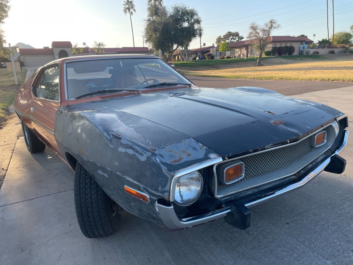 No Reserve!304 V8, 3 speed manual. Hard to find a manual transmission Javelin in any condition anywhere in the country, let alone running and driving, the manual trans ones are just not out there. Complete car, not a project. Can be driven. Has a luggage rack, original carpet, headliner, back seat are all still pretty nice. I have the chrome trim for it. It was removed for paint but then never painted. Has a ding on the left rear quarter panel and on the hood.Paint on the hood is peeling off.The tires are good, does not have working AC/heat. Has an exhaust leak noise, sounds to me like a header gasket. Really fun car to drive around town and run errands in. I take it on 80 mile drives going 65mph and have a blast in it.I'm a weekend hobbyist and a big car guy. I've had people drive/fly in from Dallas, San Francisco, El Centro, Prescott, Show Low and Los Angeles in the last few months to buy old cars from me.I am a hobbiest/enthusiast with no life so I have recently completely gone through the car to make it as nice as I could for its next owner.Recent repairs to make it nice for the next guy:New Champion aluminum radiatorRebuilt cylinder heads (Expensive $$$$) - Pulls hard especially at high speeds on the top end, pretty fast now for a 304New Trailing arm bushingsNew distributorCleaned out fuel tankrebuilt carb with new carb kit (could either use adjusting or someone who doesn't have a lead foot, because it floods after driving it for 80 miles or less and then you either have to floor it to restart it, after you shut it off, or wait 15+ minutes for the flooding to go down)New fuel filtertiming adjustedNew rear shocksfixed cigarette lighterNew temp sensorNew original style Motorola alternator, but I recommend upgrading to a 150amp (Powermaster performance part #8-46141-347)if you do a lot of driving.New thermostatlubricated window tracksNew spark plug wiresNew batteryClean AZ paper title in my name in hand, registered to me. Title says not actual miles on it, but I think that is an error. It happens often in Arizona when you go for a repair or emissions testing and the emissions guy messes up and types in 99,000 miles instead of 96,000 miles(or forgets the correct mileage from the 20-60 seconds from when he looked at the mileage to when he enters it in his computer so he just puts whatever he can sort of remember)and then the car is sold and the next person registers it and puts the correct 96,000 miles on the title, but the miles went backwards because the emissions dude had a typo and put 99,000 miles, so then the system/mvd marks the title as having not actual miles.I might be able to meet up with you in Scottsdale (about 9 miles from Phoenix Sky Harbor airport, if you want, instead of Payson) to give you the car.Cash, wire or cashiers check only. Full payment due within 7 calendar days. $500 deposit is non-refundable. Car will not be released to you until cashiers check fully clears my bank, if you're paying with a cashiers check.There are a lot of nice javelins that have been recently done by big name people:https://www.caranddriver.com/news/a18661758/defiant-drive-taking-a-spin-almost-literally-in-prestones-1036-hp-hellcat-powered-72-amc-javelin-amx/https://www.youtube.com/watch?v=H8lA1hcqSy8https://www.conceptcarz.com/s7379/amc-javelin.aspxhttps://www.youtube.com/watch?v=0-7_l9q9F8Ahttps://www.youtube.com/watch?v=H8lA1hcqSy8https://www.roadandtrack.com/car-culture/style/a16569265/theres-an-outrageous-amount-of-custom-work-on-ringbrothers-amc-javelin/