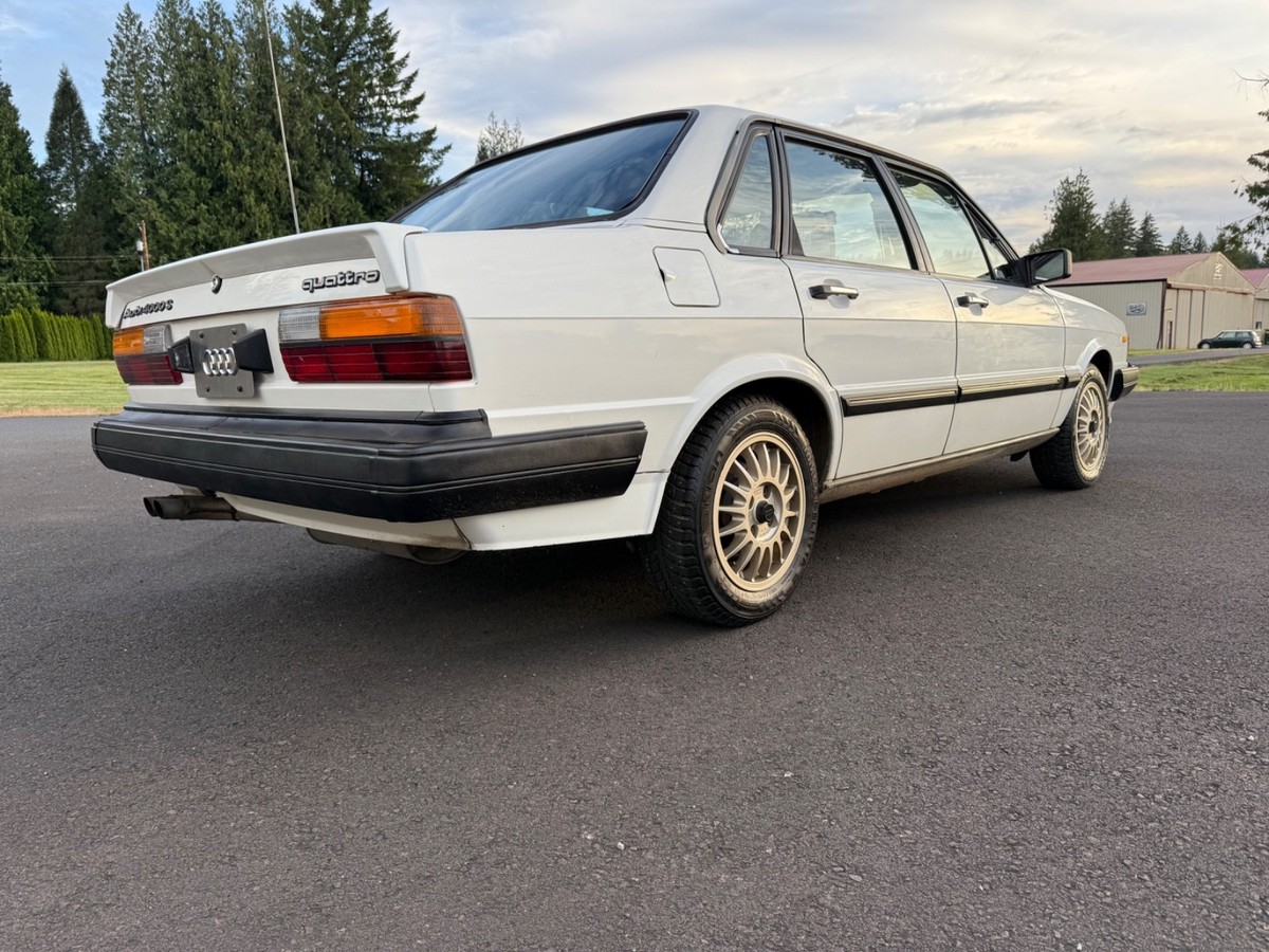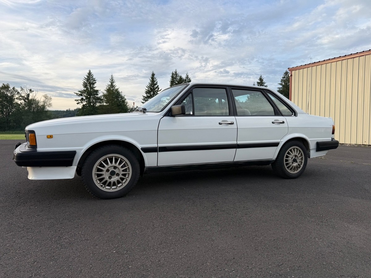 Very Rare First year 1984 Audi 4000 S Quattro Sedan in rare Alpine White. Ultimate snow car.Audi 80 in Europe, the 1984 was the official 1984 Winter Olympics car.Zero rust, I am the second owner. This car has only been in California and Oregon.All original car, hood and driver door has been repainted. Hood paint is not that great. The rest of the car is original paint. Car has been garaged entire life. I’ve repainted the bumpers and the lower front spoiler. Replaced everything I could when I bought this last summer. Window regulators, door seals, H1/H4 headlights, taillight, clutch master cylinder, battery terminal, AC Hose, AC needs recharge.Power locks don’t work. Stereo doesn’t turn on, odometer doesn’t work which seems to be common, so true miles are unknown. This car runs well and drives good. Studded tires on it now and come with another set of factory R8 Ronal wheels. One for summer one for winter. Had all dings dents I could removed by paintless dent removal.Has not been a white 84 for sale for like 10 years. Last sale fell through due to financing. Please have money to purchase. $500 non refundable deposit after sale.Many more pictures and videos are available, just ask.