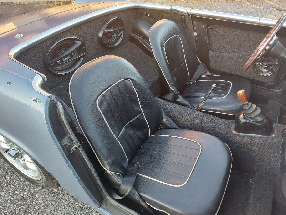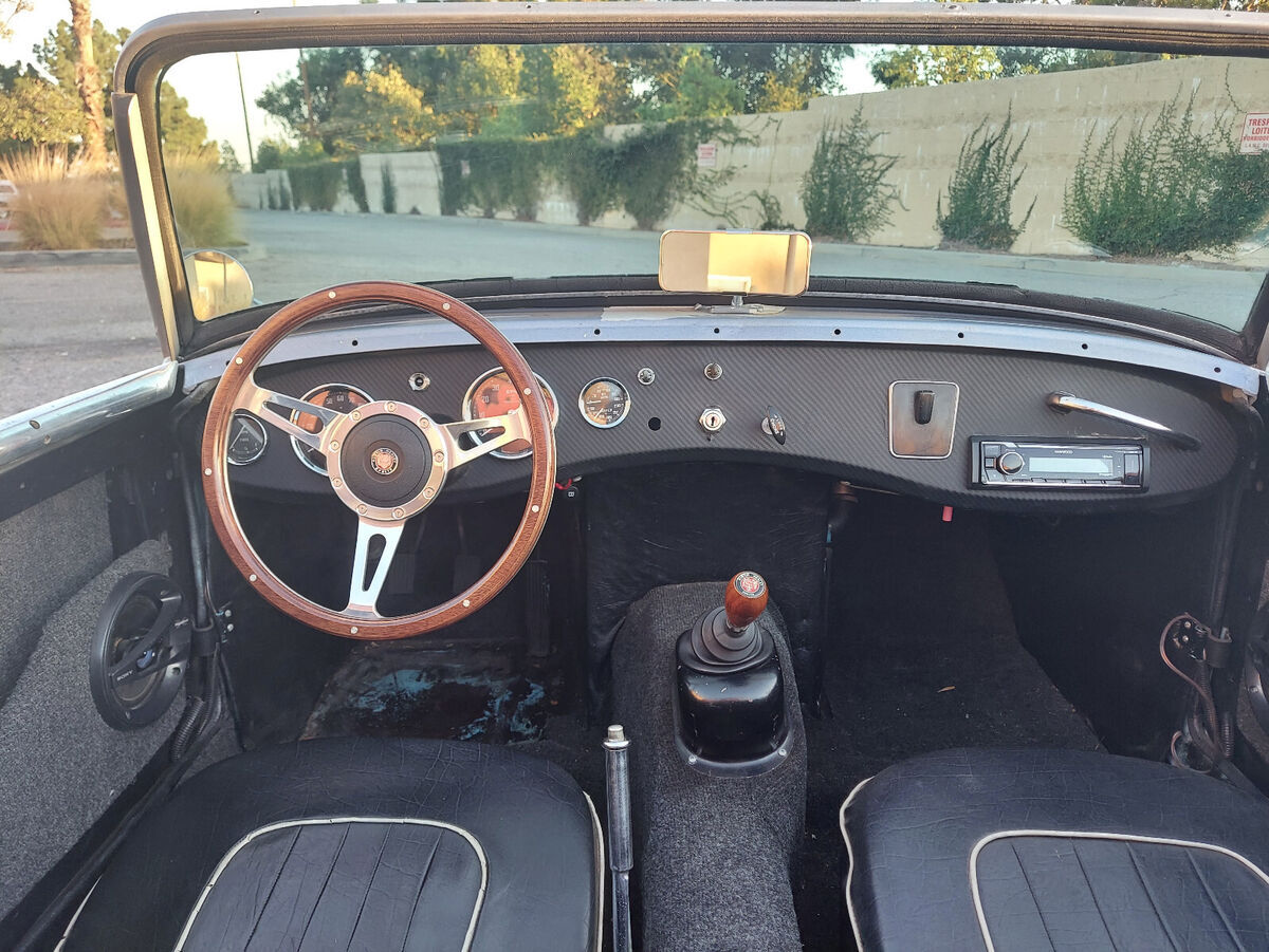 1098 engine (10CC) larger crankshaft variant. 5 speed Datsun 210 transmission installed with the Rivergate kit -2nd gear can pop out when down shifting from 3rd K&N air filters Modifications: Alternator conversion done 7/2021 Aluminum radiator w/ electric fan done 7/2021 5 rib serpintine belt conversion done 7/2021 ExT16 AGM battery with aluminum mount installed 1/2022 trickle charger included. Fuel system done 1/2021 -new tank -new brass float -new pump and filter Brakes done 2/2021 -front new pads, rotors, and rebuilt calipers -rear Ceeative Spridges adapter plates w/ Nissan calipers, pads, and rotors. Minitar Mini lite wheels Achilles 122 145/80R13 new on 2/2022 Lowered with 6 degree wedge in the rear and pan spacers in the front Rear tube shock conversion Speedhut GPS Speedometer and electric tach with custom faces Single din media radio with Bluetooth Seats have new bottom foam Soft top is in good condition Restored yellow on black California plates registered with the YOM program. Dual aftermarket horns currently not connected Hella glass headlights with LED bulbs Included items: Door window frames Front sway bar Leather shift boot with later model trim piece Additional aftermarket steering wheel with hub Front grill chrome surround pieces. Original gauges - Speedometer worked with original 4-speed transmission would need gearing adapter to work with the Datsun transmission, tach is positive ground and would need to be converted to work with negative ground. Repair manual