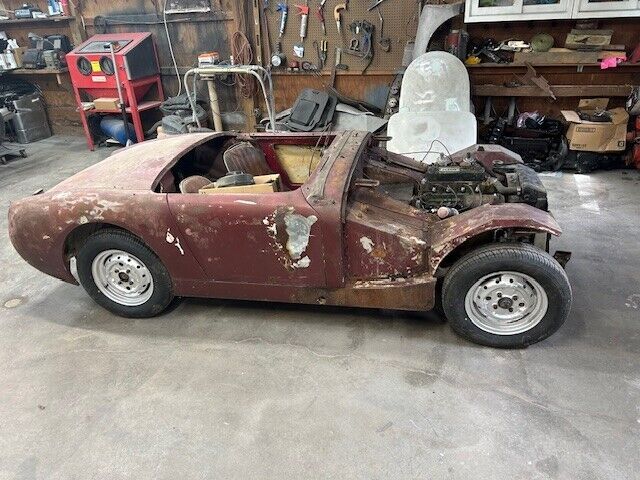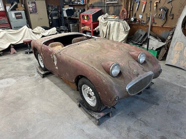 1958 Bugeye. Car came out of a 35 year dry storage. It's a good candidate for full restore. Spring pans look good with lots of surface rust. Floors not as bad as normal. They can be repaired without replacing. Bonnet was removed and media blasted and put in epoxy primer. It needs attention as well. there are two other places on body that will need a small patch. The car needs to be completely media blasted to start the restore. I have a good windshield frame and glass. Car is missing the front bumper, top bows, and seat cushions. I blasted, primed and painted the wheels and had new tires mounted so car is a roller. I was informed by a previous owner that he had the engine rebuilt before the car was parked. It's the original 948 and is free. I started to tear into the car but time constraints have gotten in the way. Clear title in my name. I will answer any questions if need be.