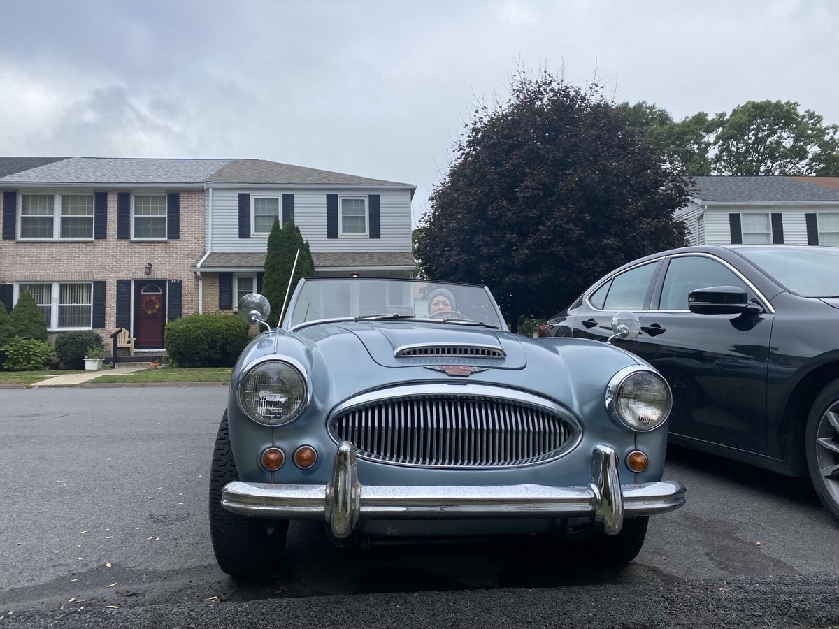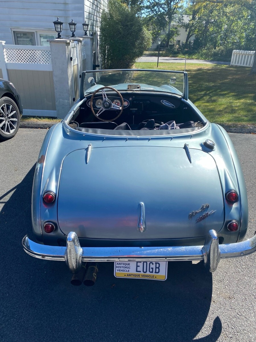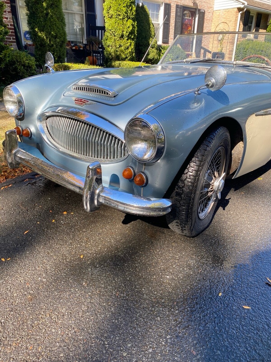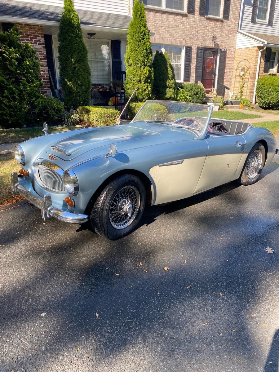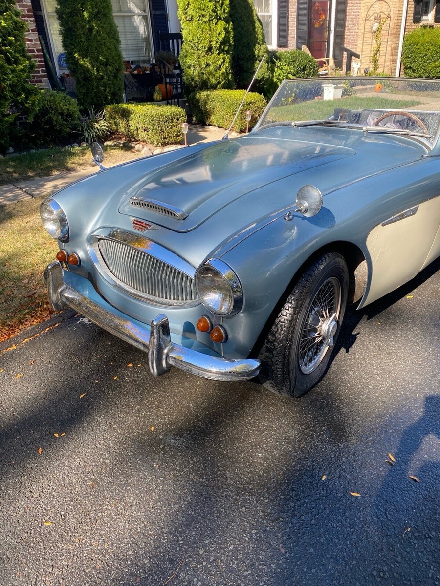 1962 Austin Healey 3000 series, Healey Blue with White side panels. Standard 4 speed with Toggle Overdrive . Comes with hard top in need of restoration. And has slide windows. Car cover. Two seater with a jump seat . Seatbelts were added. One thing is it doesn’t downshift into second
