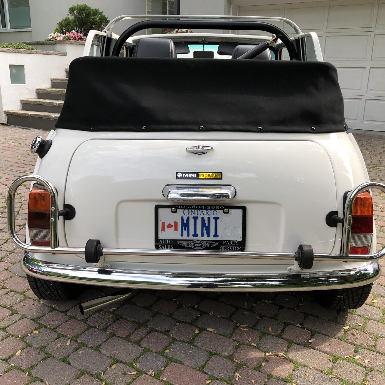 In order to strengthen the convertible body and improve the safety feature for the Mini, a new roll bar was custom-made which meets the track racing standard. The soft top was also custom made with high quality water-proof mohair cloth material with a tonneau made of the same material.