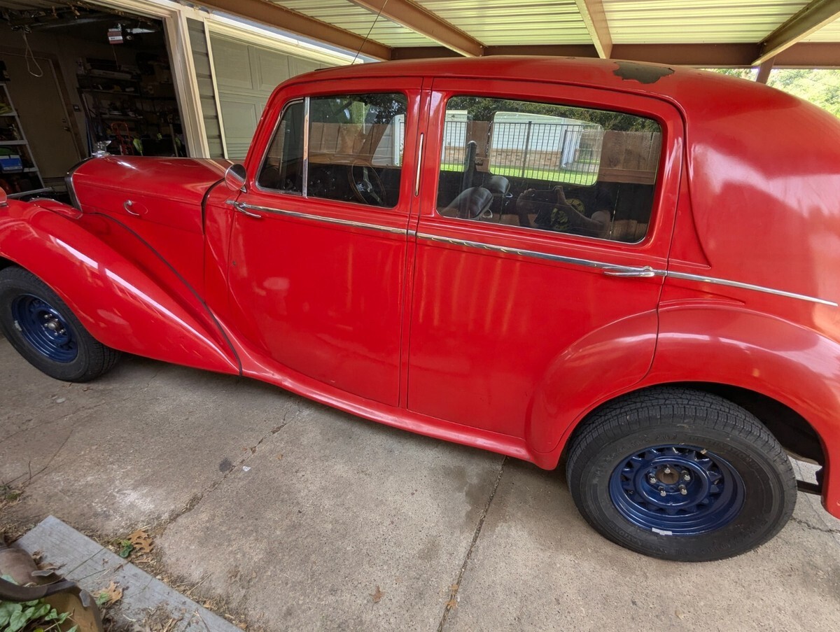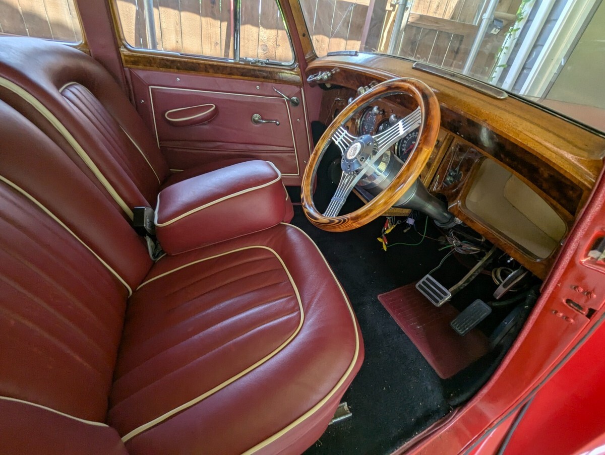 The 1951 Bentley Mark VI is a classic sedan with a red leather interior and exterior color. This luxurious vehicle features an automatic transmission and a powerful 8-cylinder LS engine. Runs and drives. The interior is very nice red leather. The original wood inside is in incredible condition. Very nice. The car has a custom chassis by Fat Man fabrications and has disc brakes in the front. Lots of spare parts and manuals included. The car is not perfect, but it's a great start and a great head-turner as-is!