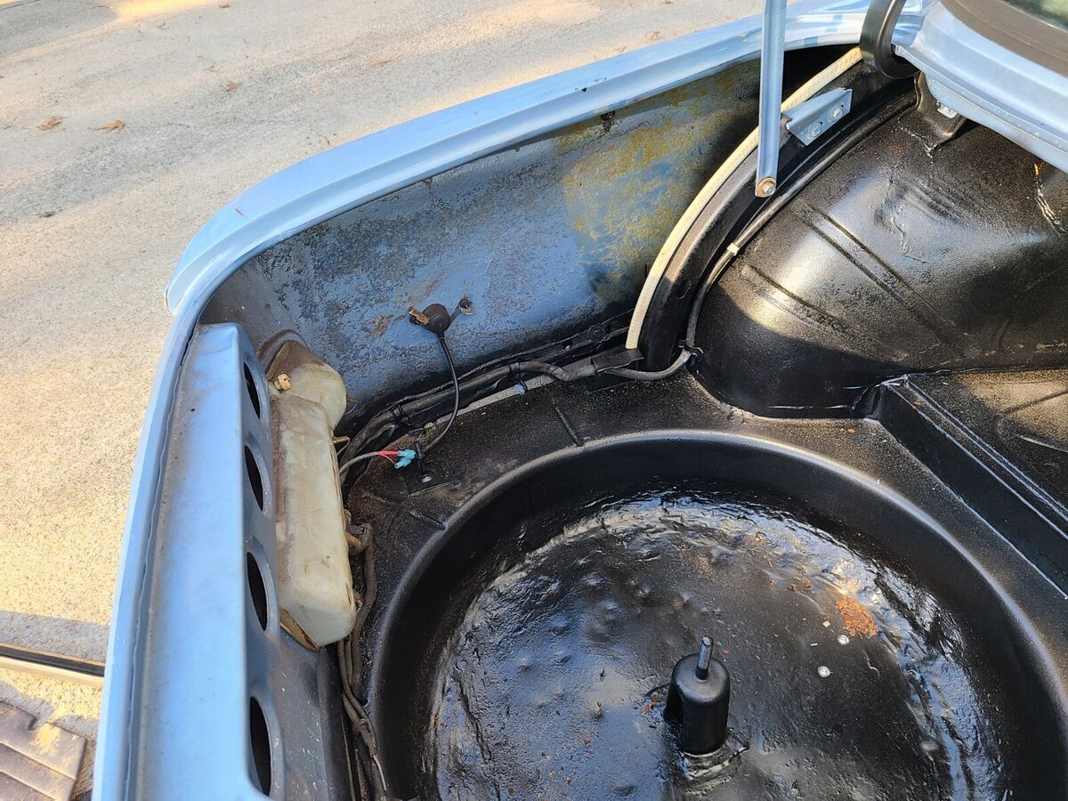 This is a running and driving project car. What has been replaced to get it on the road: Engine mounts, trans mounts, guibo and center shaft bearing, all rad and heater hoses, master cylinder and brake hoses, radiator, water pump and thermostat, fan blade and fan clutch. It now runs, drives, stops, shifts through all gears smoothly, at a steady temp with no smoke. The odometer reads ~35K but I suspect it has rolled once. I had planned this for my own rebuild, but my wife's 60th birthday is coming up and I need to change directions; she likes convertibles...... there is no accounting for taste.....