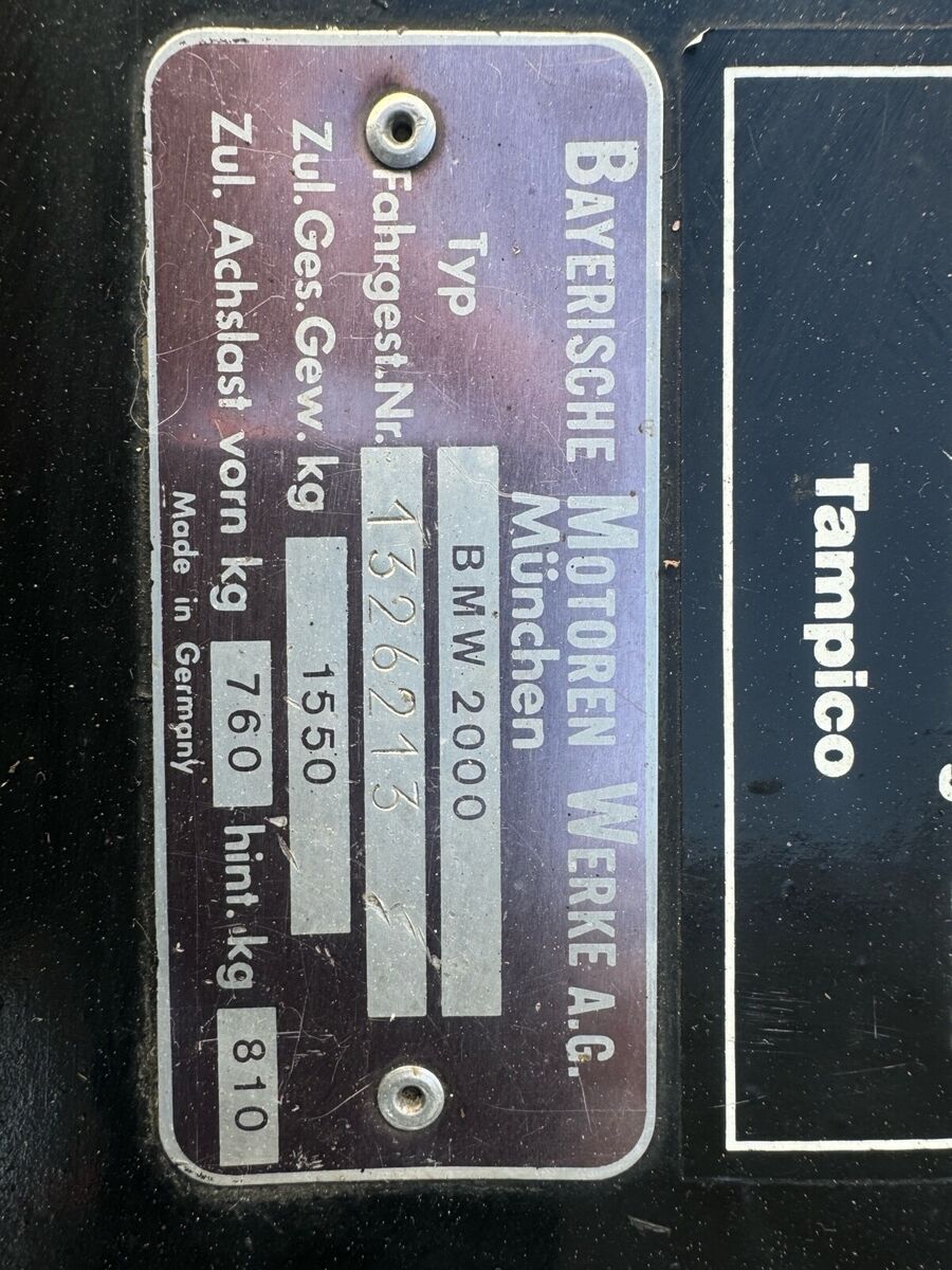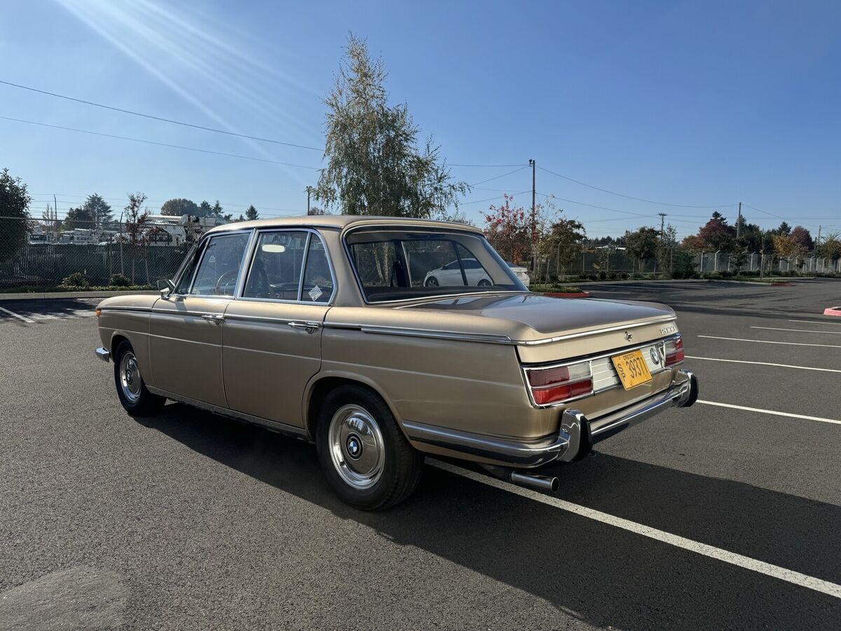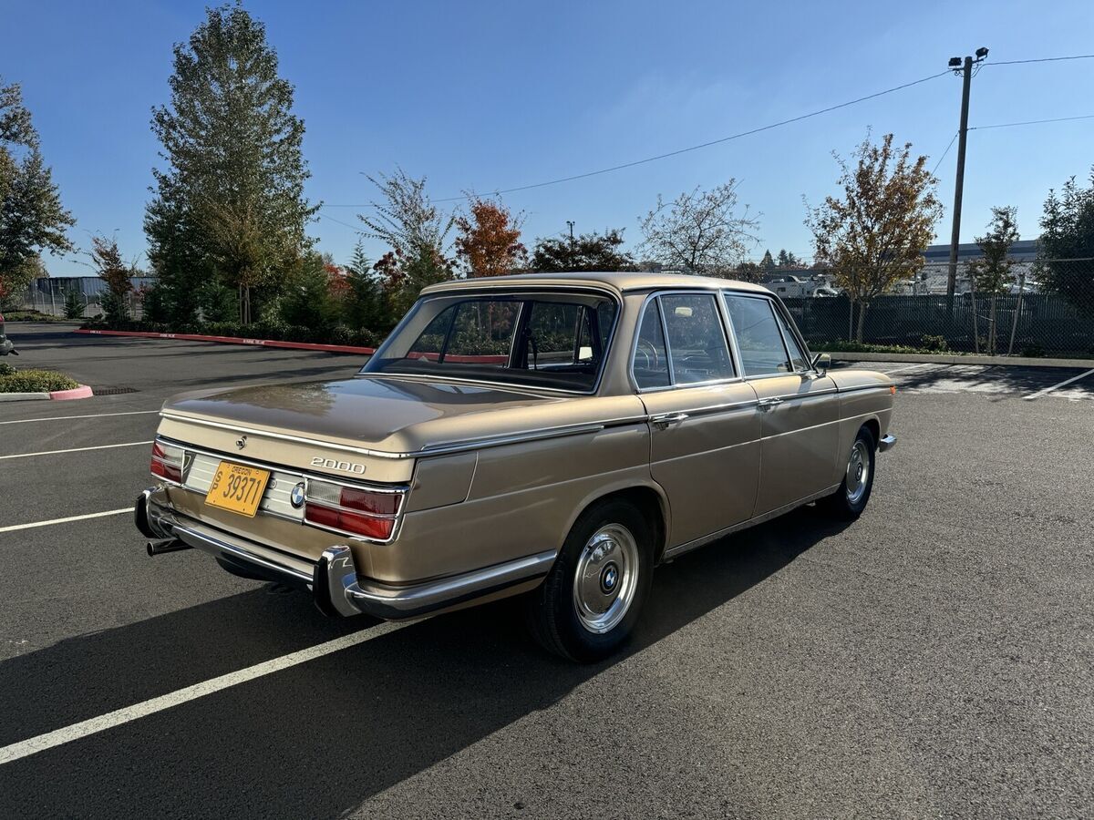 1967 BMW 2000 Neue Klasse Sedan. Exterior Color: Gold Interior Color: Brown VIN: 1326213 Mileage: 11,000 Fuel: Gasoline Transmission: 4 Speed Manual Drivetrain: Rear Wheel Drive Title: Clear