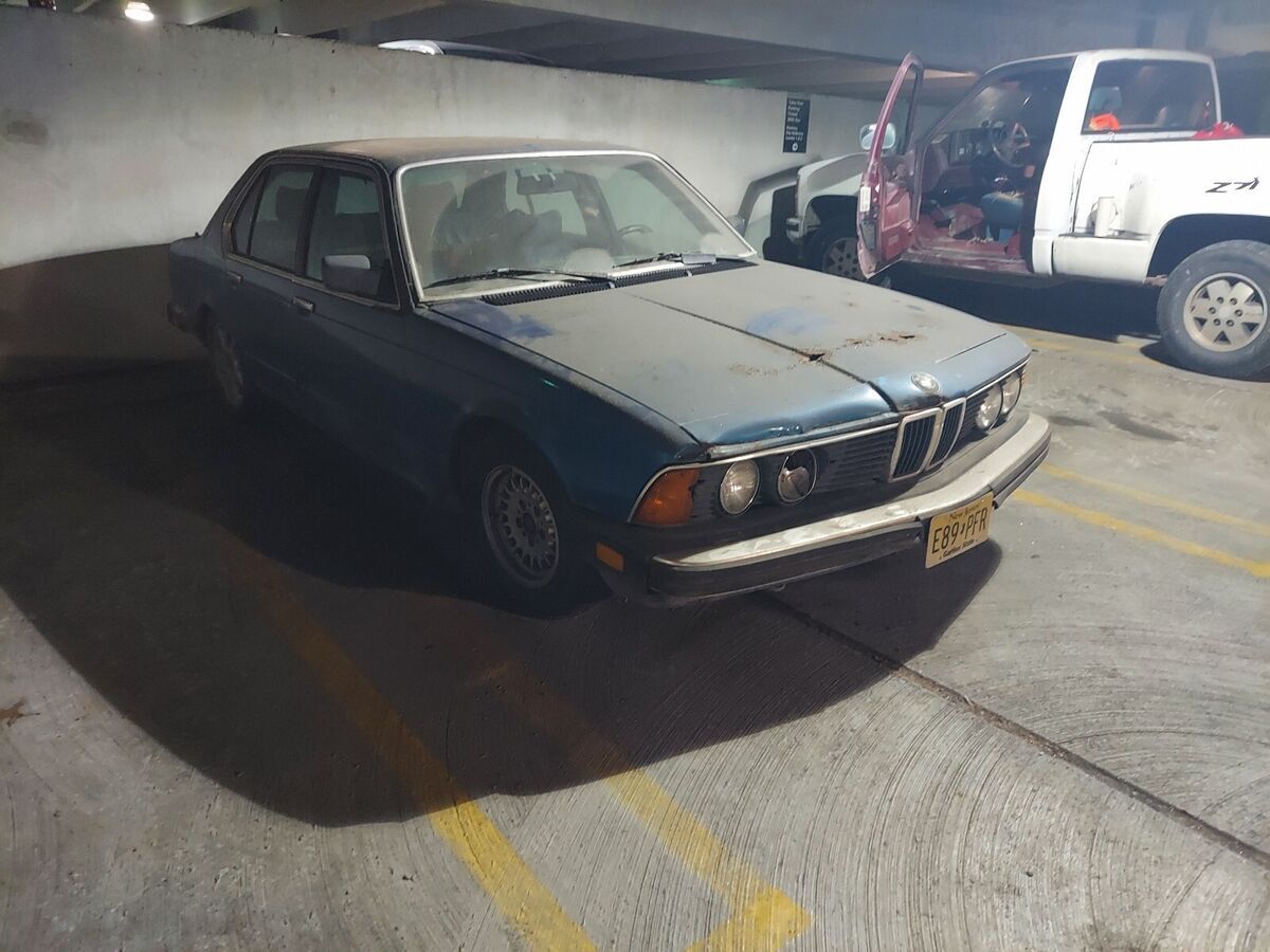 1985 BMW 735i Pacific blue exterior/interior 3.4 inline 6, 5 speed manual, this car has a good bit of rust, there is right front damage on header panel, right front fender & headlight trim ring i have driver side replacement front fender, the hood has spots that are rusted thru,