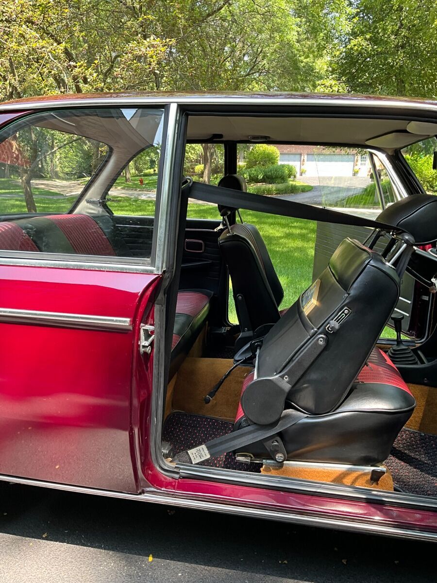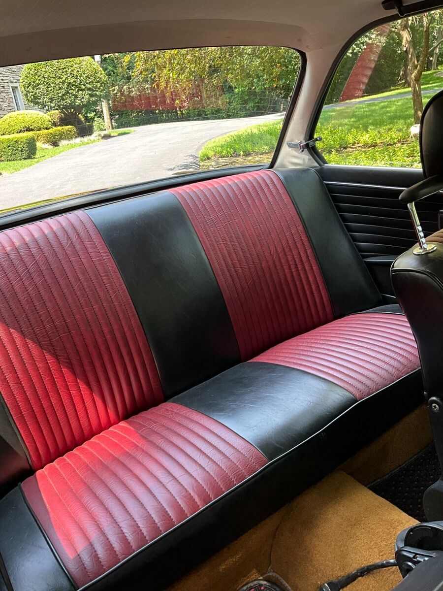 ???? Interior:The interior features red and black vinyl seats, brown carpeting, Coco mats, and hand-crank windows. The dashboard and door panels are black, consistent with the original minimalist Euro style. A cabin heater is present and functional.
