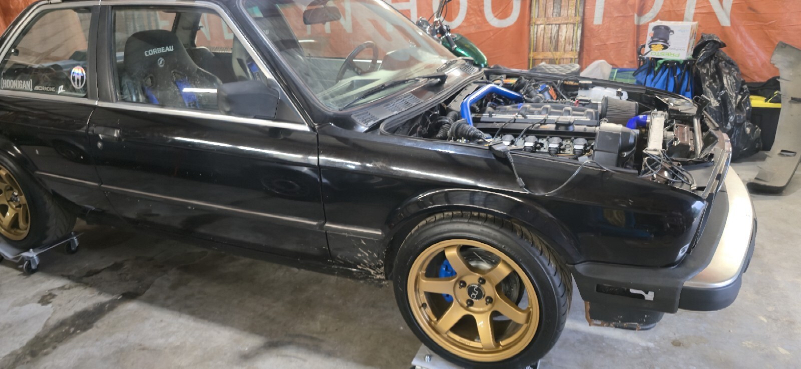 1987 bmw 325e. M52 swapped. I bought 2 e30 bmws as a pair and this one is swapped. Im somewhat of a purist and not into swapping engines. Also this thing is set up to drift and that's not my thing. I did not do this swap and I dont know anything about it. Someone spent some good money building it though. I included a pic of a list of parts on ot that eas goven to me when i purchased it. The car starts right up and runs, but it will die on the down rev when you give it gas. You will need to have it towed or transported. Clean clear title in my name, in my hand.