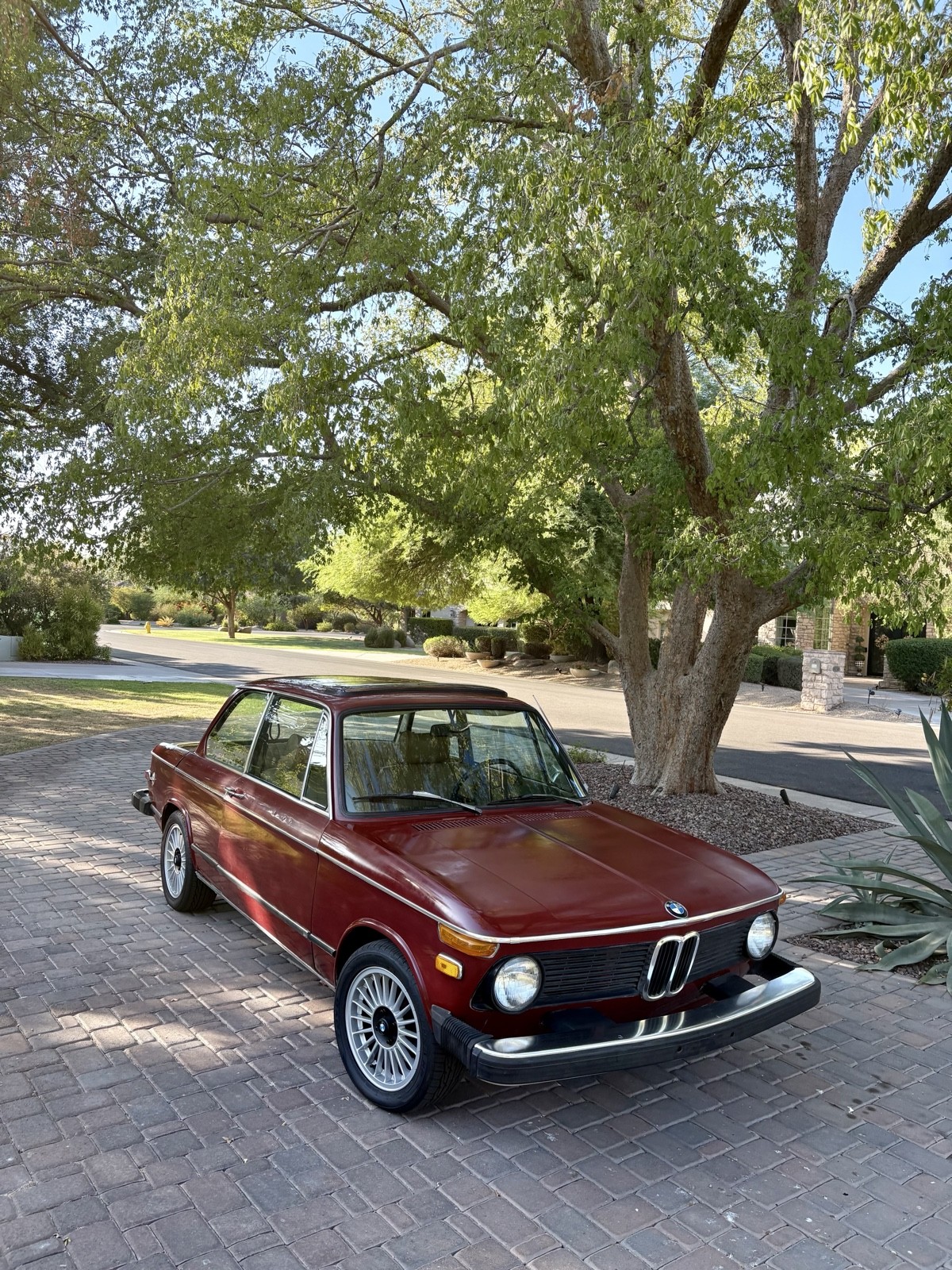 This 1976 BMW 2002 is a Malaga Red, factory sunroof, factory A/C, automatic. A cherished survivor that has been impeccably maintained by the same extended family for over 35 years. Numbers matching engine, transmission, differential and chassis. Never in an accident and spent it’s life in New Mexico and Arizona. With a mileage of 129937 miles, this classic car runs smoothly and is primarily used for weekend drives. Notably titled as "clean," this vehicle is a reliable choice for any BMW enthusiast looking for a vintage gem to enjoy on leisurely outings.