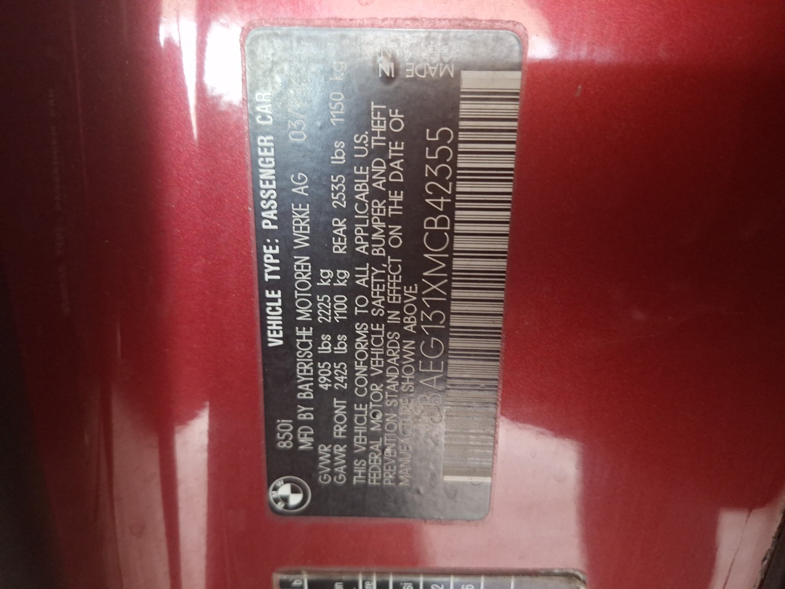 - VIN: WBAEG131XMCB42355