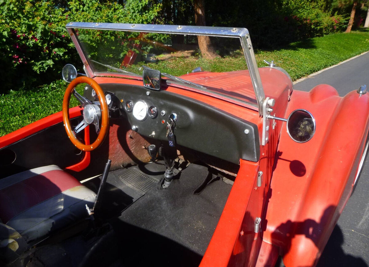 This Bugatti replica is one (1) of several fabricated in 1982 by Daytona Automotive Fiberglass in Orlando, FL. Out of the approximately 50 known built, the current history documents only five (5), this being one of them. The more formal name would be a Daytona MOYA. The car is powered by 1973 VW air cooled engine and running gear, both front and rear with a 4 speed stick shift transmission. CA titled, currently registered as a Historical Vehicle, and being driven on the street to local car shows. Car still needs a few features restored to new condition; adding fender skirts, interior seats, and convertible top. Two replacement seats are included at this price.