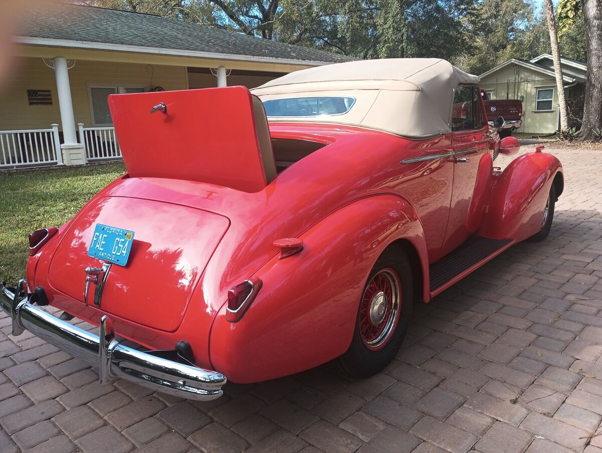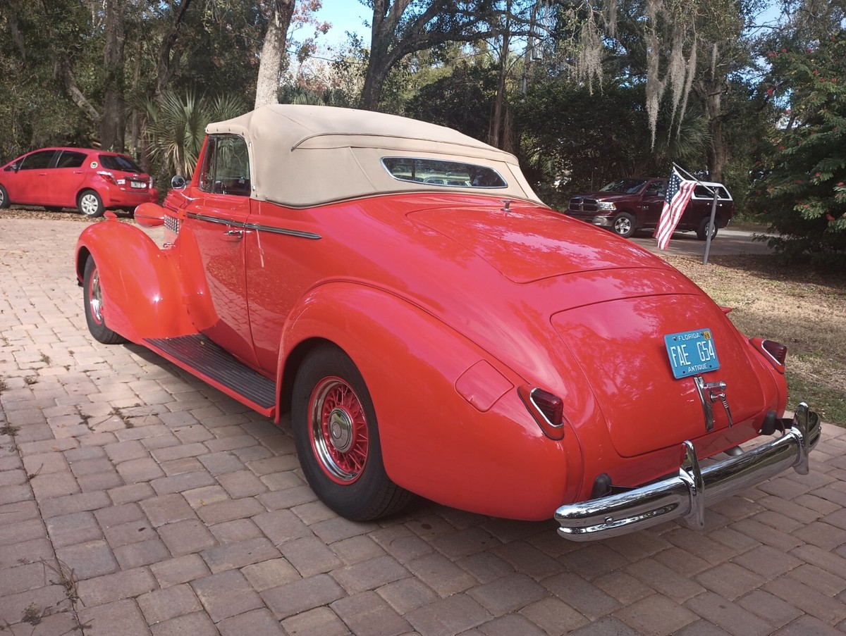 Selling for my neighbor. One beautiful rare 1938 Buick Special Convertible. Professionally completed with a total ground up restoration. Mildly hot rodded and upgraded where it counts to create an up to date ride with the comforts of a new vehicle.Mechanically new from the restored drivetrain including it's Chevrolet 350 motor, Turbo Hydro-matic 400 transmission, 10 bolt 8 1/2 inch rear end with highway gears. Runs, drives as new. Mustang front suspension, springs, exhaust, related brakes and steering are all new and road dependable. Every inch of the motor was gone through and has complete new components to enhance its look and reliability. Add the power steering, power brakes, Vintage Air Conditioning and I'm sure you get the picture.Interior restoration uses an original seat covered in leather with red piping. Power windows, glass. 2 speed wipers, VDO gauges, new door handles and everything works to perfection. The convertible top is new, in and out. The rumble seat and trunk space are new and tastefully match the interior.Finally check the base clear paint, new chrome throughout, fit and finish, new wheels and tires. I haven't seen a better 38 convertible available.We can assist at our end with any shipping needs nationally or worldwide. Free delivery in Florida.