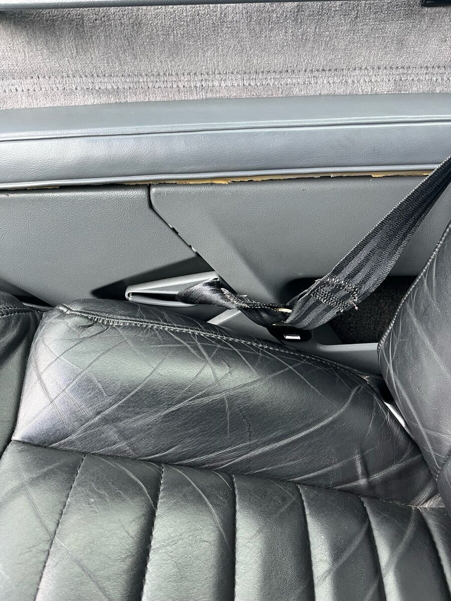 The interior is in excellent condition, the leather is all intact and has no rips or tears except for a small area shown in the photo. The carpets are excellent as is the headliner, dash and door panels. There is some separation on the passenger door panel as shown in photos.