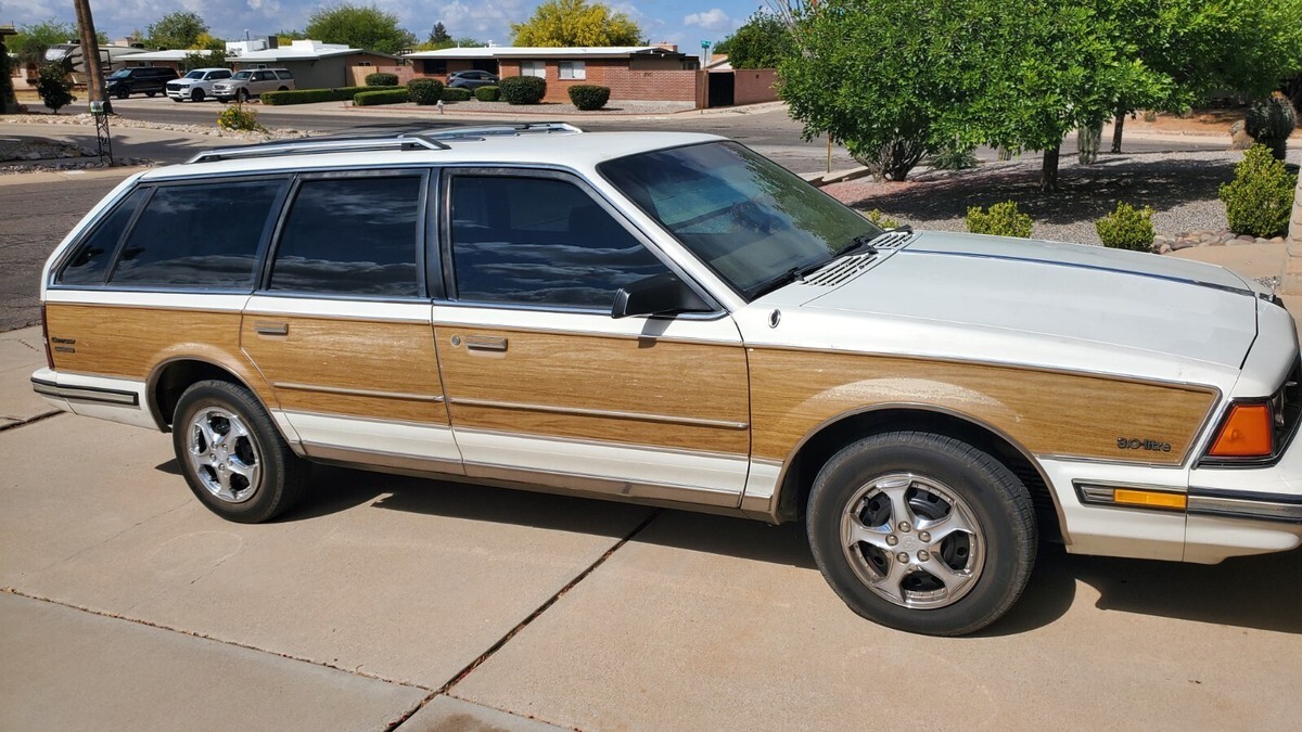 The 1984 Buick Century is a spacious wagon with a brown interior and white exterior. It has 8 seats and 6 cylinders with a 3.0L engine size. The car features automatic transmission, power windows, cruise control, and air conditioning. With a mileage of 64,000 and 3 previous owners, this Buick Century is a reliable and comfortable passenger vehicle for daily use or road trips. This classic car also has features like tinted rear windows, power seats, power steering, and a split bench seat for added convenience and style.