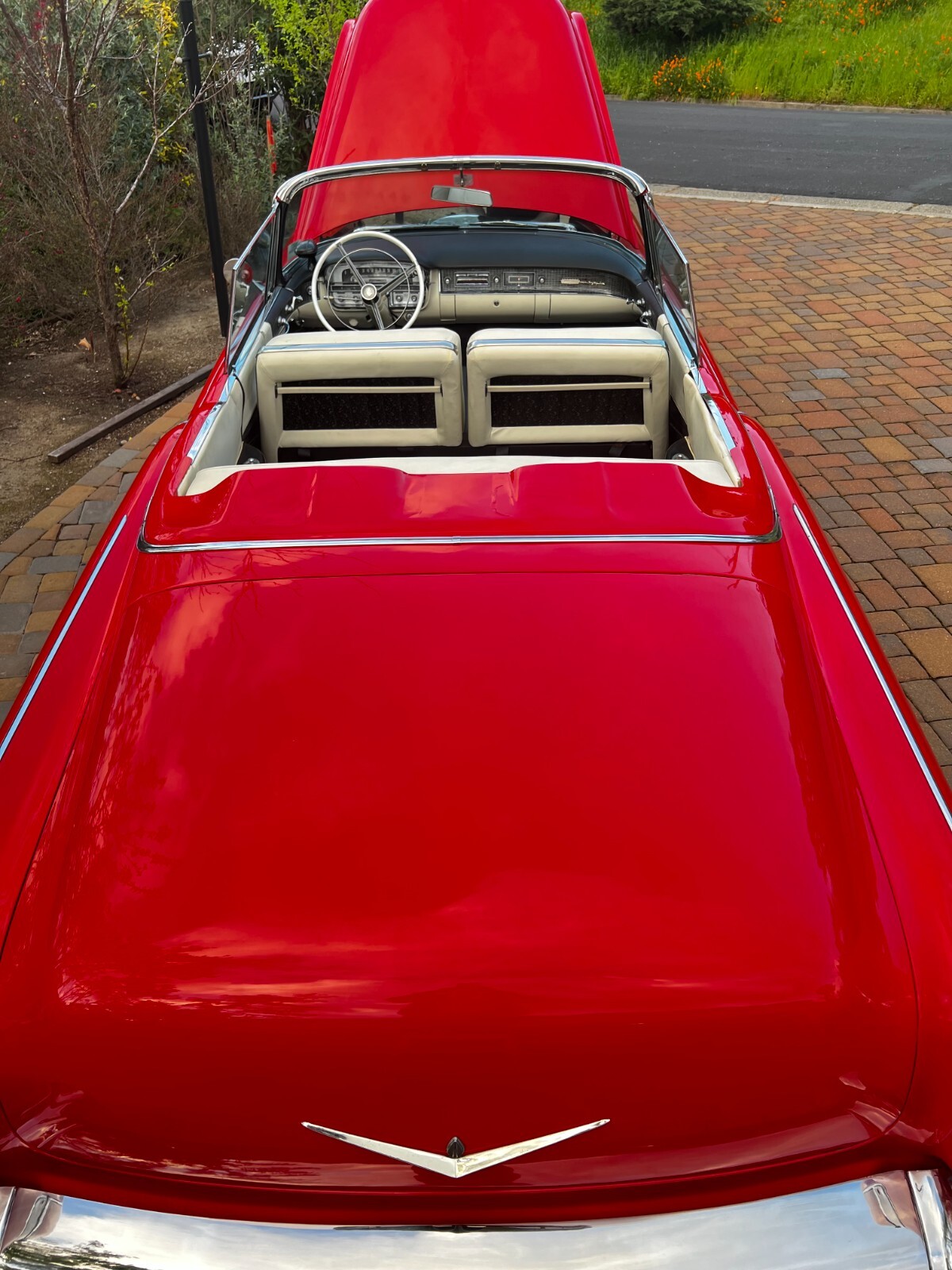 This is a 1956 Cadillac 62 series Coupe deVille 2 door NOT convertible! , with ORIGINAL GM (365 V8, 6 L) engine that has 44347 original miles and automatic transmission.