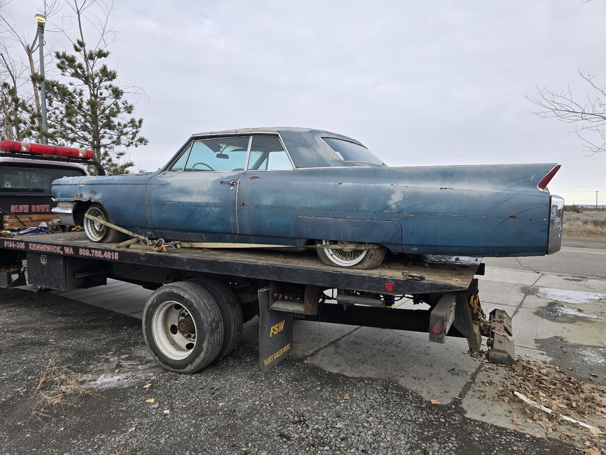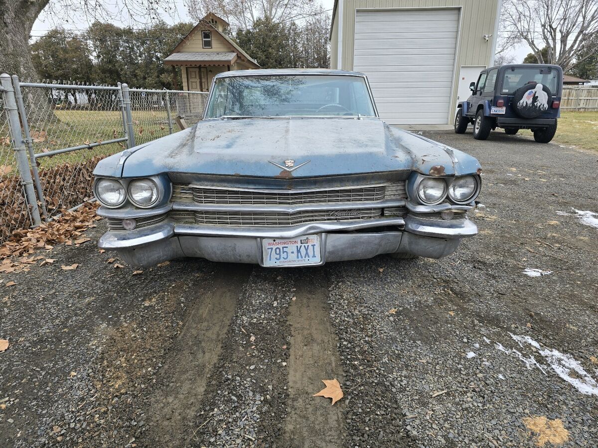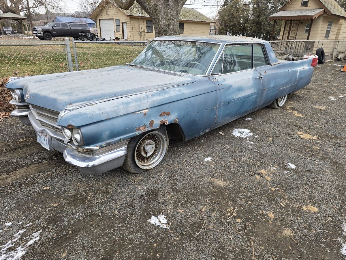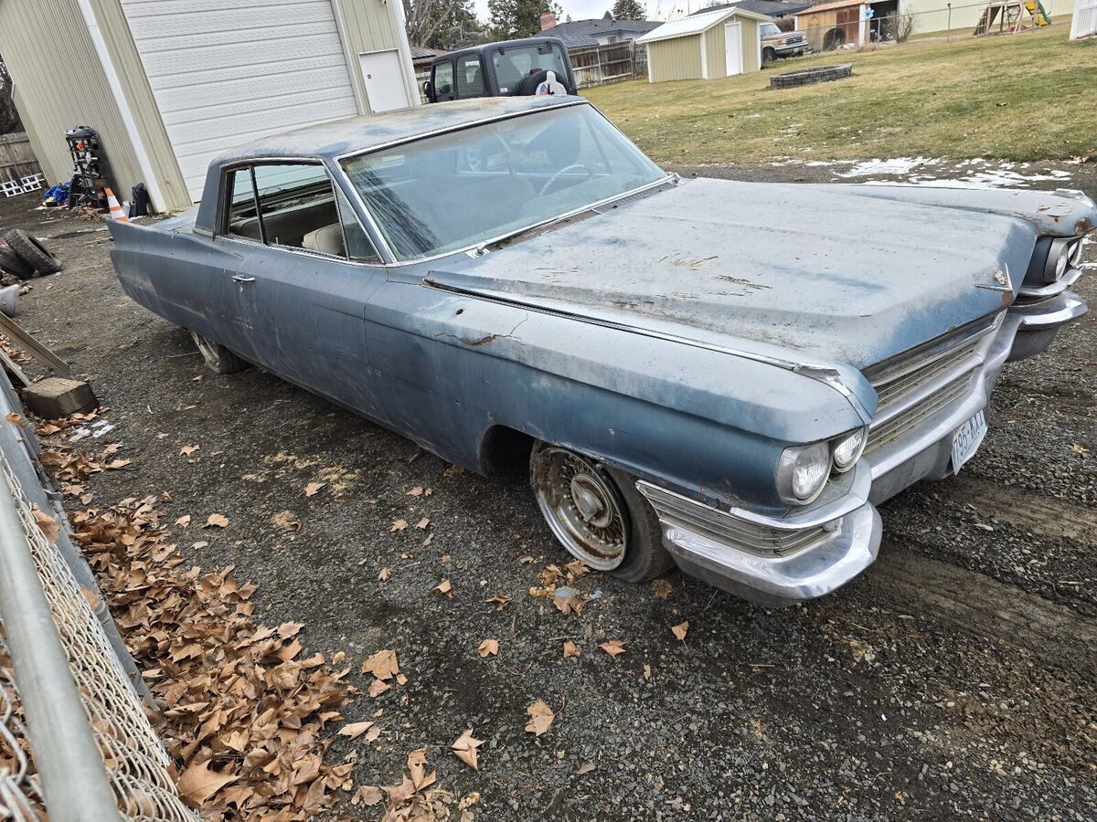 This 1963 Cadillac 62 Coupe in blue with a clean title has 86,431 miles. Owned for a year, it requires attention and is not used frequently.
