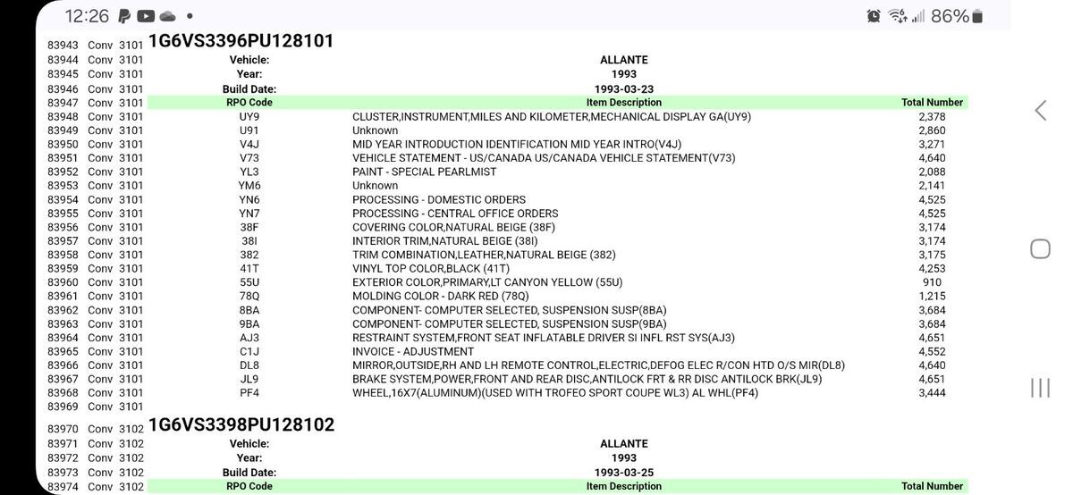 Excellent condition! Body and paint 9.5, interior and dash 9.5, top very nice. 2 new front tires. plugs plug wires and all coil packs all new. Spent all but one year in California and Arizona No rust anywhere period, No leaks of any kind. 4.6 North star engine runs great lots of power transmission shifts perfect. uses no fluids. drives shifts and stops as it should. all options work like new. All glass excellent all power options work. Ac and heat work fine no ac leaks. AC converted to 134A. Feel free to call with any questions. Never in an accident fax report available. Jerry 479-466-5963This car has the V4J midyear improvements making it much more desirable.,