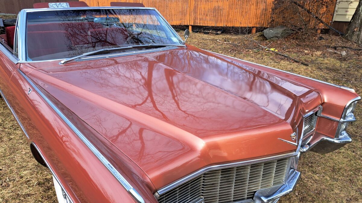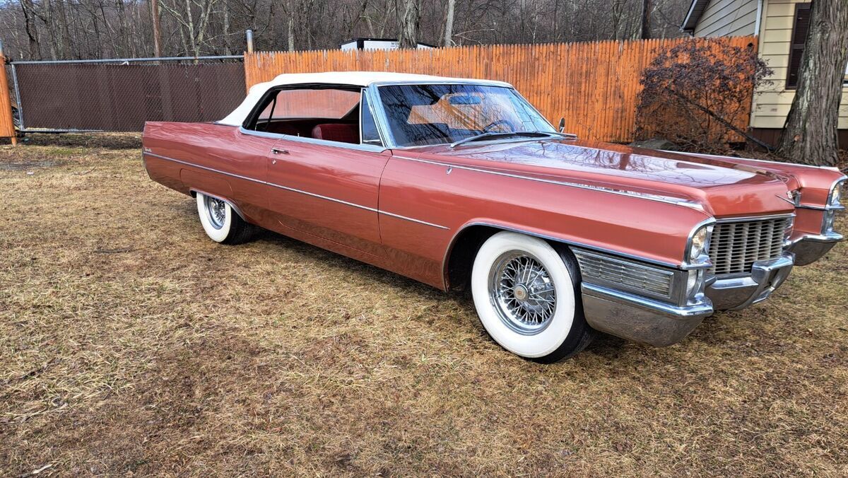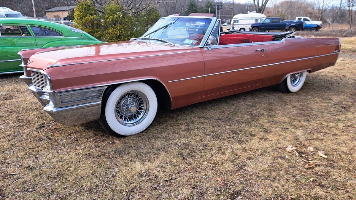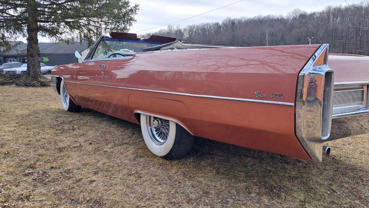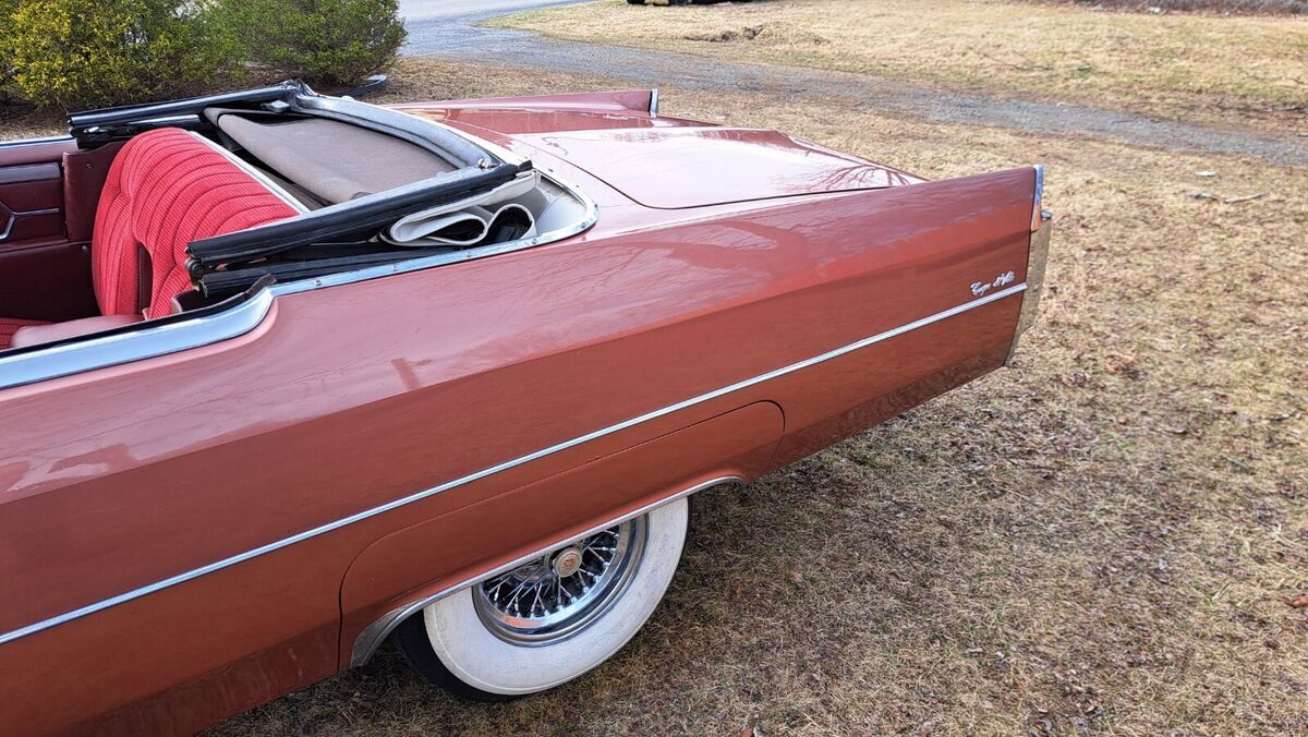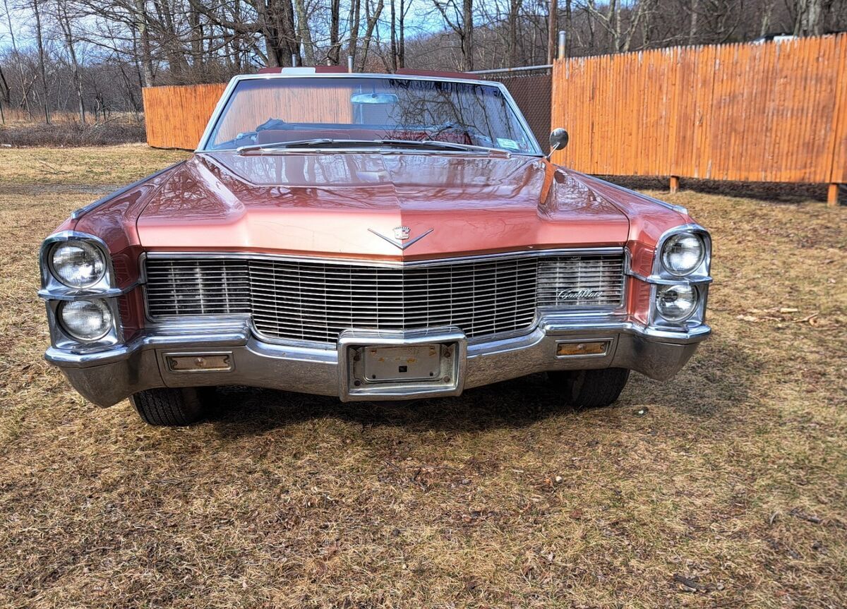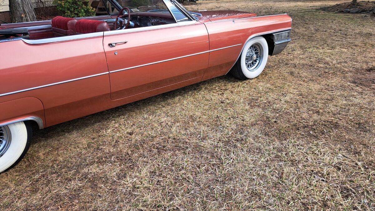 This is a 1965Cadillac Coupe DeVille Convertible with an original 49K miles. That is not a typo, it is an actual 49K. This is a one owner factory A/C car with a rare color salmon bronze iridescent. It's not every day you see this color with a red interior. The car has beenoff the road since 2008 in a climate controlled garage. As you will see in the pictures the original inspection sticker from 2008 is still on the window. The car has been completely gone through coming out of storage which I will describe in detail so please read the entire listing.As stated above the car was stored since 2008 and has since been completely gone through service wise. The tires are full white wall radial, all the brakes have been done, All fresh brake hoses, wheel cylinders, spark plugs, wires, cap and rotor. All fluids replaced including the rear differential. Coolant has been replaced and also has a new thermostat along with hoses. The transmission has also been serviced and has fresh fluid and a new filter. The carburetor has been gone through as well. The A/C compressor is working. The suspension bushings control arms and everything has been thoroughly checked and serviced as needed. It also comes with a like new Convertible boot never installed. This car also has the the real wire wheels, not hubcaps.Cosmetic- The paint on this car shines beautifully and has been polished and sealed, absolutely no dents, dings, just a couple of small blemishes here or there normal wear for a 1965 over the years but looks really nice. The interior is in beautiful condition as you can see in all the photos. Thecarpets are perfect as well,and no cracks at all on the dash, door panels and so on,. The steering wheel is in great shape. The Frame is 100% rust free and all body mounts are perfect and notrusted or rotted at all. It is very common on these Cadillacs for the rear body mounts to rust and these are like new. We are a classic car and hot rod shop and deal with these Cadillacs all the time. This is one of the nicest I've come across, the usualspots of the trunk that go bad in these cars are like factory new even all original carpets are intact and like new condition. The car has the original factory undercoating preserved and reappliedwhere needed. I cannot say enough how nice this car is. The car is stock with the exception of some cosmetic exhaust upgrade work and some updates on the interior done manyyearsago. The convertible top is in perfect condition as close to new aspossible and works electronically flawless. The bright work is in Great condition.All the electric windows work perfectly fine, no issues whatsoever. The power top works perfectly with the hit of the switch. The car has the full original spare jack in the trunk. The car runs and drives great! Here's a chance to own an absolutely stunning beautiful car with a rarecolor combination. I'm sure if you were a fan of these Cadillacs particularly these year ranges are getting harder and harder to find and are going up in value. finding somethingin this condition is a hard task to say the least.Shipping- if you need any assistance in shifting I'd be more than happy to help, I can help you get a great door to door rate and set it up for you if you'd like.PAYMENT- The only payment method accepted will be cash in person, Bank Wire transfer. If you need to send bank check, I can not release the car or title until check is fully cleared, Sometimes that can take up to 10 days. I will not accept any type of escrow service or Caramel. If you are doing a loan please let me know first this way all details can be worked out prior. Thank youPlease any potential buyers call before clicking buy it now and making an offer. I just do not feel comfortable accepting any offer with out speaking first on the phone. I would like to make sure we both have all details worked out prior. So please Call First. Thank you 570- 234- 0587
