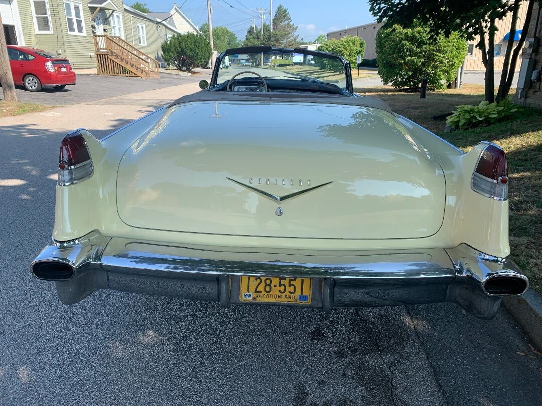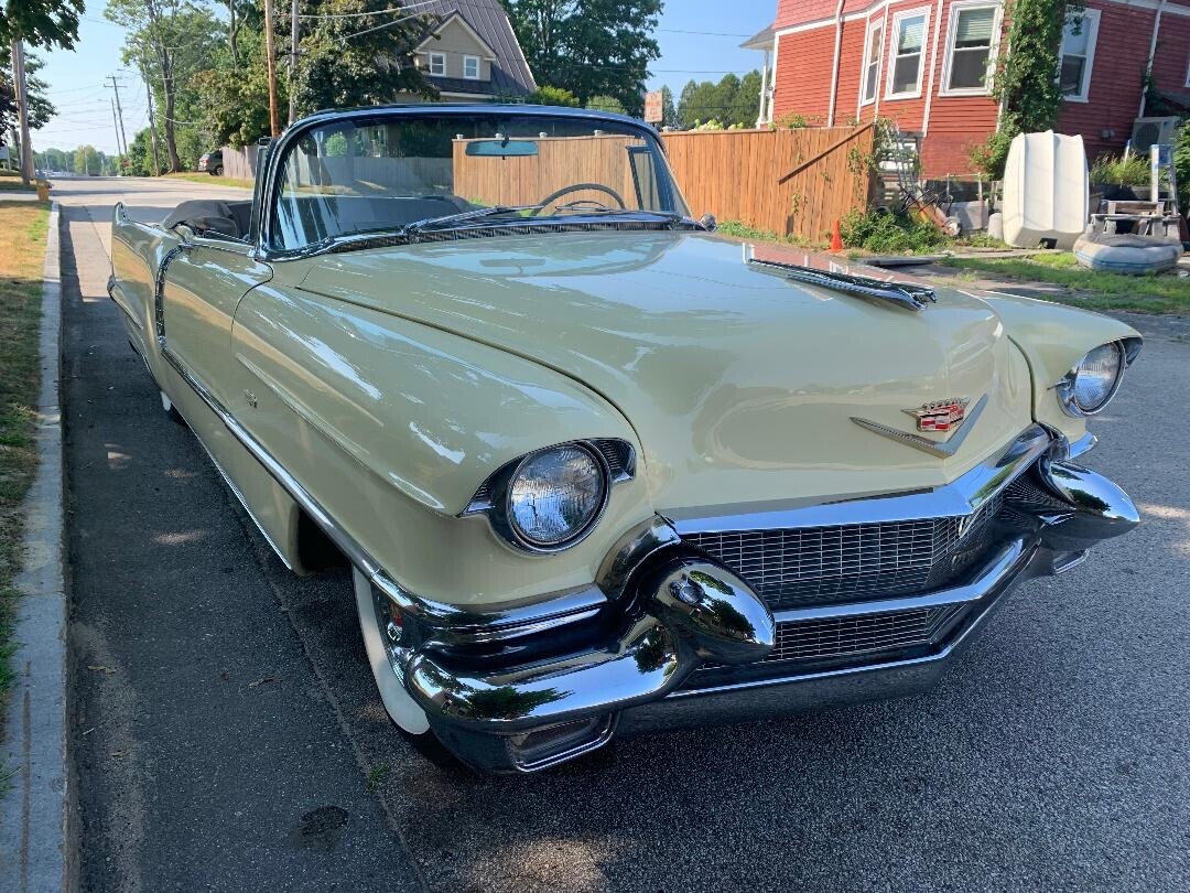 Experience the blend of classic elegance and vintage charm with this 1956 Cadillac DeVille. The iconic yellow exterior paired with a rich tan interior creates a timeless aesthetic that's sure to turn heads at any collector car event. This two-door convertible is a testament to the grandeur of past automotive design, offering seating for up to six passengers in a spacious cabin. Under the hood lies a robust gasoline engine, coupled with an automatic transmission, ensuring a smooth and effortless drive. With its clean vehicle title and 89,000 miles on the odometer, this Cadillac is a prime example of leisurely cruising in style. Embrace the allure of classic collectors with this 1956 DeVille, a shining star in the world of vintage automobiles.Thanks AI...... now here's my description: This 1956 Cadillac DeVille convertible has an older restoration but is remarkably clean. New Corker tires, recent tune-up and she's running great! Good exhaust including the bumper ports, shifts fine, no smoke, brakes do not pull, starts right up every time. Replaced convertible top hydraulic cylinders 2 years ago. Odometer says 89,000 and the brake peddle is not overly worn so who knows.Maine does not title vehicles over 25 years old. Car is sold with bill of sale and the current registration signed over to the new buyer.