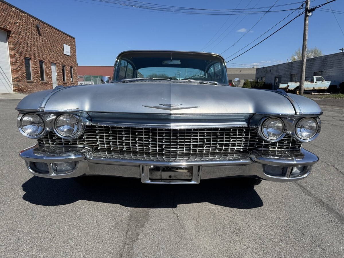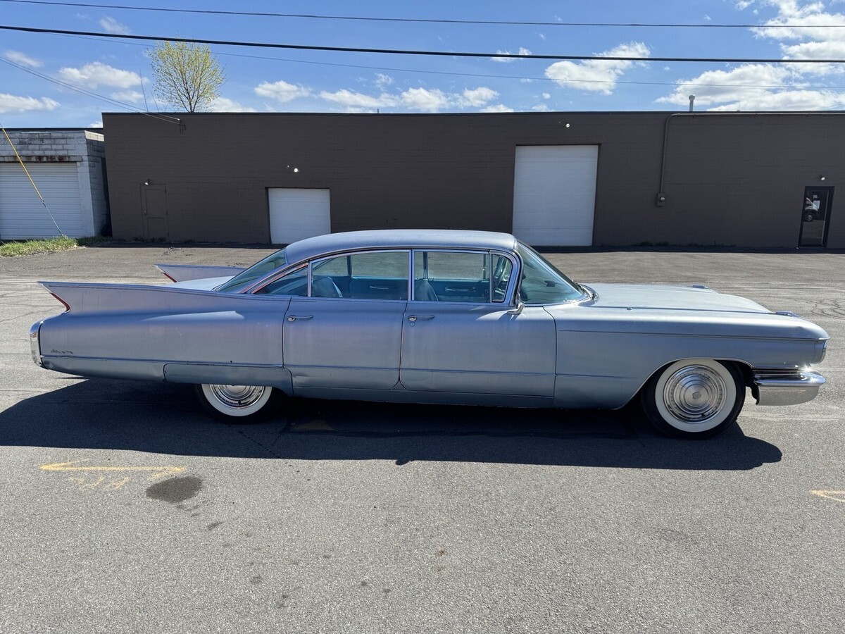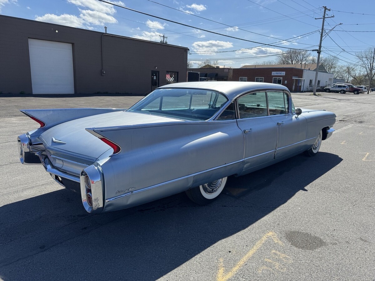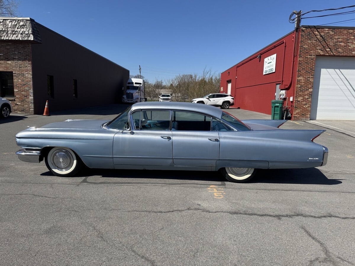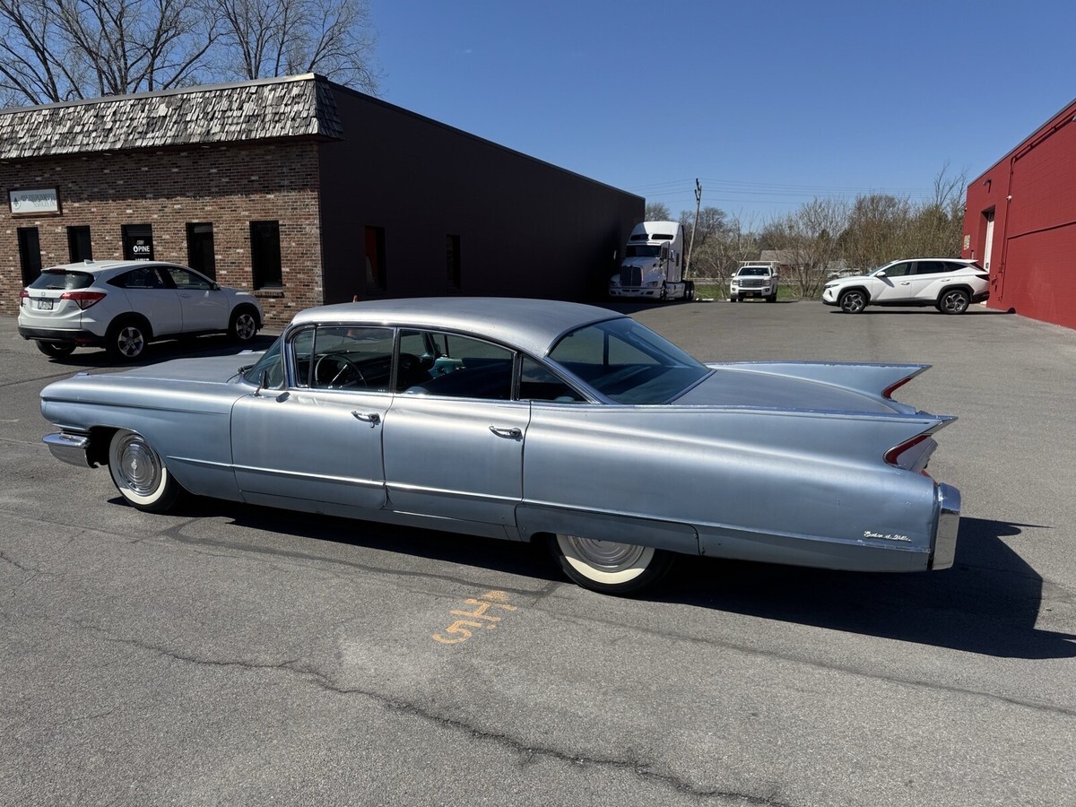 1960 Cadillac Sedan Deville. Runs and drives. Brakes are good.Tires are nice but old. Newer exhaust. But has an exhaust leak near the exhaust manifold. Needs restoration or drive as is. Would make a cool rat rod. Frame is solid. Floors were patched but not professionally. Has dings and dents. Lower rear quarters need work. Was painted a satin color. Kinda cool looking. Again not professionally. Interior was redone at some point. Chrome and stainless is in pretty good. Passenger window not working. Again it needs restoration but you can drive it as is. This cool caddy is sold as is.