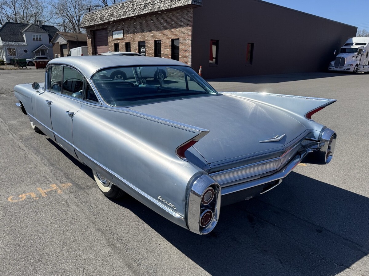 1960 Cadillac Sedan Deville. Needs restoration or drive as is. Runs and drives. Brakes are good.Tires are nice but old. Newer exhaust. But has an exhaust leak near the exhaust manifold. Runs a little rough needs a tune up . Would make a cool rat rod. Frame is solid. Floors were patched but not professionally. Has dings and dents. Lower rear quarters have rust and need work. Was painted a satin color. Not professionally .Kinda cool looking. Interior was redone at some point. Chrome and stainless is in pretty good. Passenger window not working. This cool caddy is sold as is.$9500 or BEST OFFER