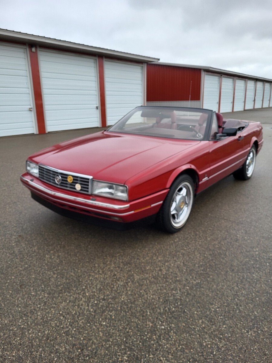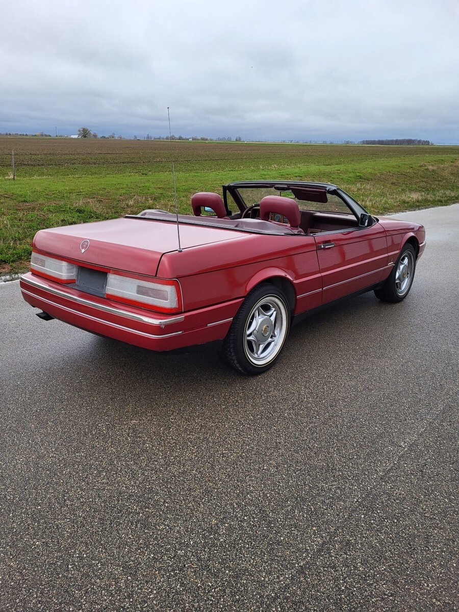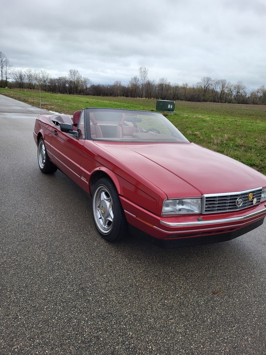 Beautiful 1987 Cadillac Allanté - maroon metallic exterior with maroon interior, Recaro leather seats. The car is equipped with a removable hard top and a tan color soft top. This Allante runs good, drives good, but will need the brakes looked at since the brake light is on. The soft top does not pull all the way up. Seems to be particularly stuck under the top pull down motor. Canvas top looks to be in good condition. Chrome 16" cadillac wheels and newer tires.