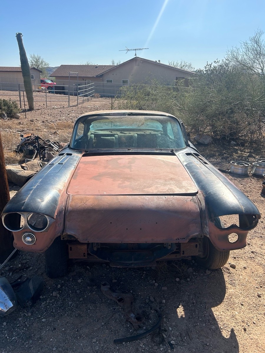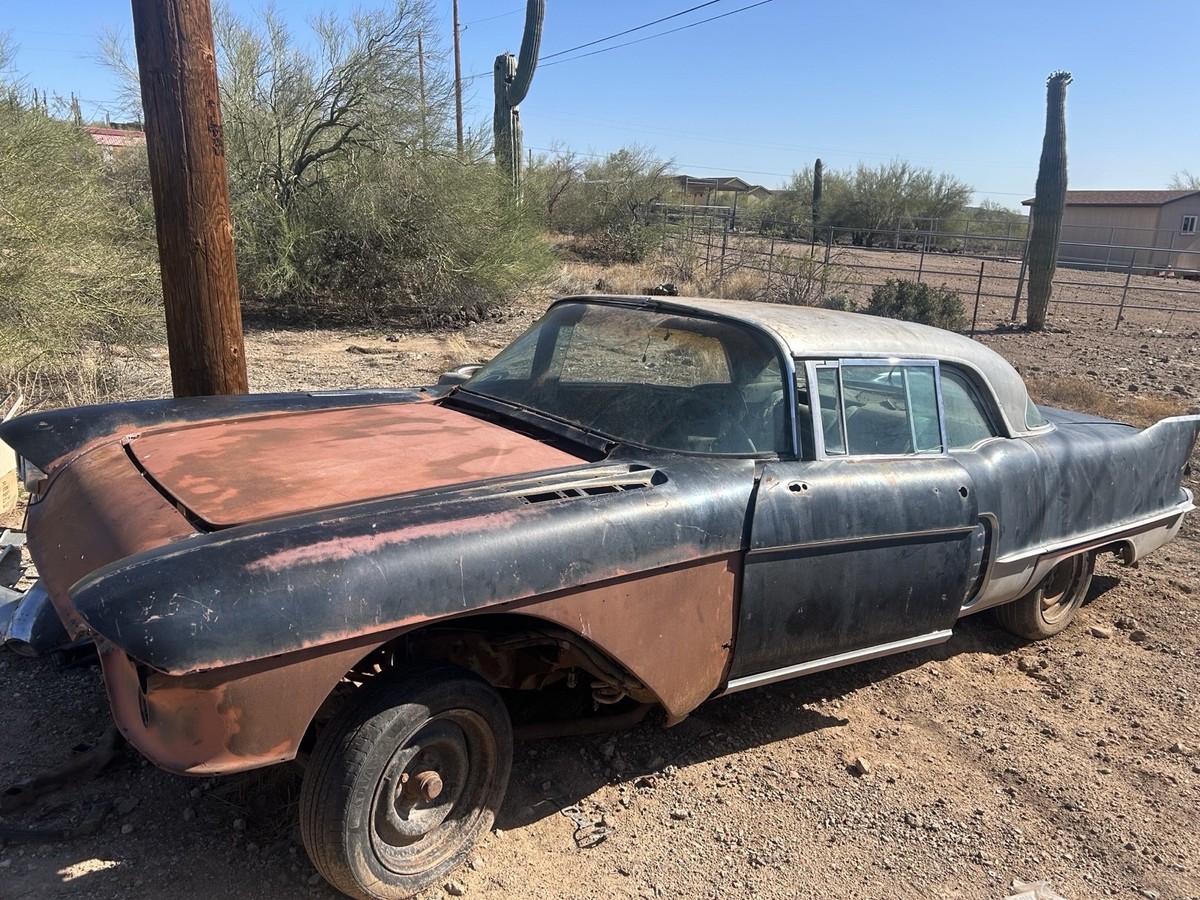 1957 Cadillac Eldorado Brougham Body Code 7059X serial number 398. Not running. Needs full restoration. All glass is good and not cracked or broken. Has some smaller rust areas, still a nice solid southwest car. Stainless steel roof in great shape. Missing grille and air cleaner. Car is mostly complete otherwise. Have tons of parts not shown in photos. Have bumpers, seat, emblems and so much more. Do not have title. Sold as is for parts with a bill of sale. International buyers are welcome.
