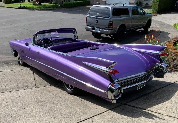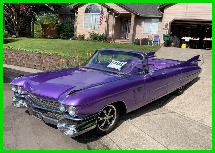 1959 Cadillac Custom Convertible For Sale in Camas, WA 98607 This Cadillac is powered by a rebuilt 390ci V8 engine paired with a 3-speed automatic transmission. It is shown with a purple exterior and a purple interior. This vehicle has been well-maintained. Features No Top Chrome Accents Custom Interior Custom Paint Job Rebuilt Engine Owner’s Notes “Up for sale is a stunning 1959 Cadillac Custom Convertible—a true icon of classic American automotive design. This custom Caddy turns heads everywhere it goes with it