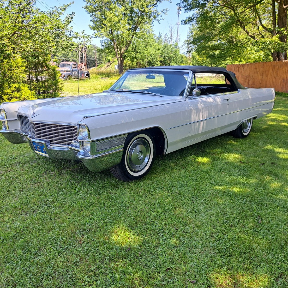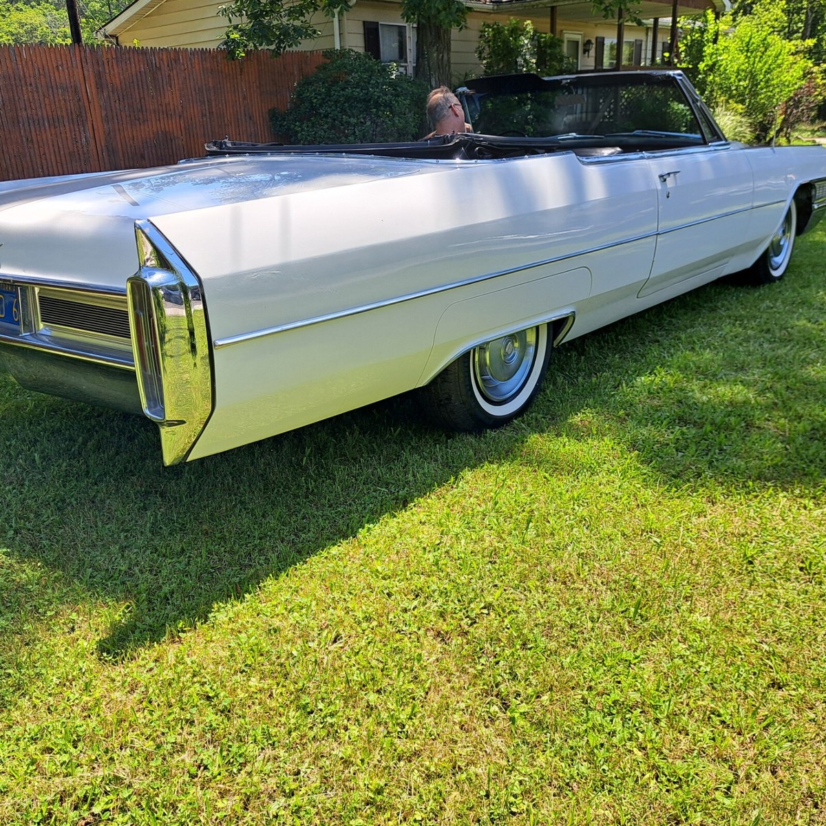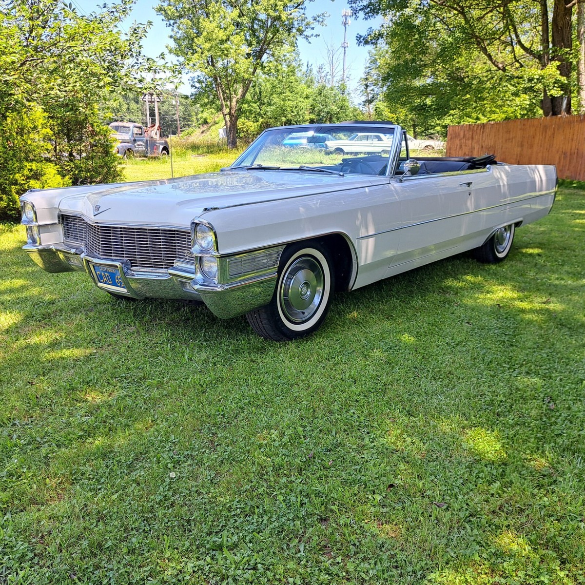 This is a Stunning 1965 Cadillac Coupe DeVille Convertible with 38K Miles, This is a 1 owner California car, white with a black original Top and Black leather. It has lived its entire life in California, we acquired the car some months back from the originalowner who was a retired Doctor. As you can see in the photos it still has its CA plates and was last on the road in 1982. It was stored in a dryclimate controlledgarage. The doctor only used the car sparingly for pleasure. We have since serviced and completely gone through the car top to bottom tobring it back to an everyday driver If wanted. As you will see in all the pictures and full description we have done everything to this car mechanically it is completely done. All brakes, fluid service, tires, battery and of course any suspension components that look dry were replaced just for an example. Please read theentire listing for a full description of all work done.As stated above the car was stored since 1982 and has since been completely gone through service wise. The tires are brand new and werereplaced while the car was on the lift for the undercarriage photos, if you see the photos you will see the originalbias tires werestill on the car during the photos. All the brakes have been done, All fresh brake hoses,wheel cylinders, spark plugs, wires,cap and rotor. All fluids replaced including the rear differential. Coolant has been replaced and also has a new thermostat along with hoses. New updated aluminumradiator.The transmission has also been serviced and has fresh fluid and a new filter. The carburetor has been gone through as well. The fuel tank was removed and cleaned along with a new sendingunit. The suspension bushings control arms and everything has been thoroughly checked and serviced as needed. There are many small things I am not sure I am forgetting to mention. But this car really is that nice. Even the originalam/fm radio still workCosmetic- The paint on this car shines beautifully and has been polished and sealed, absolutely no dents, dings, really nothing negative to say at all, very minimal blemishes if any.I think you would be hard pressed to find another 1965 in this condition. . The interior is in nice condition as you can see in all the photos. Thecarpets are perfect as well,and no cracks at all on the dash. normal age minor wear on seats as you can see in photos,but again one of the nicest 1965s I have seen . The steering wheel is in great shape, no wearat all. The Frame is 100% rust free and all body mounts are perfect and notrusted or rotted at all. It is very common on thesecadillacs for the rear body mounts to rust and these are like new. We are a classic car and hot rod shop and deal with these Cadillacs all the time. This is one of the nicest I've come across. All the usualspots of the trunk that go bad in these cars are 100% perfect like factory, all original panels are intact and in nice condition. The car has the original factory Spare and Jack. The original undercoating was preserved and cleaned and dressed. I cannot say enough how nice this car is. The car is stock with the exception of some cosmetic exhaust upgrade done many years ago and is really not much louder than stock. The convertible top is solidand not leaking at all and of course has the originalglass back window.. The bright work is in Great condition.All the electronics are perfect. windows work perfectly fine, no issues whatsoever. The power top works perfectly with the hit of the switch. The car has the full original spare jack in the trunk. The car runs and drives great! Truly a dream to drive. Here's a chance to own an absolutely stunning beautiful car with a very desirable color combination. I'm sure if you were a fan of these Cadillacs particularly these year ranges are getting harder and harder to find and are going up in value. Finding somethingin this condition is a hard task to say the least.-Payment- The only payment methods will be cash in person. Wire-bank transfer or certified bank check. If paying with a check it will need to be fully cleared prior to release of car or title. Please know that can take over a week sometimes. Sorry no escrow service of any kind or ebay check out. I can not release the car until full payment is cleared. Thank you for understanding.Shipping- if you need any assistance in shifting I'd be more than happy to help, I can help you get a great door to door rate and set it up for you if you'd like. We are a classic car shop and ship customers cars in and out all the time.***Please if you are a serous buyer its best to call. I will not accept an offer without speaking on the phone first. Sometimes people just make offers for fun and have no intentions on buying. I hope all buyers understand. I just would like to have all details worked out prior. Thank you*PLEASE serious buyers call 570-234-05 87*