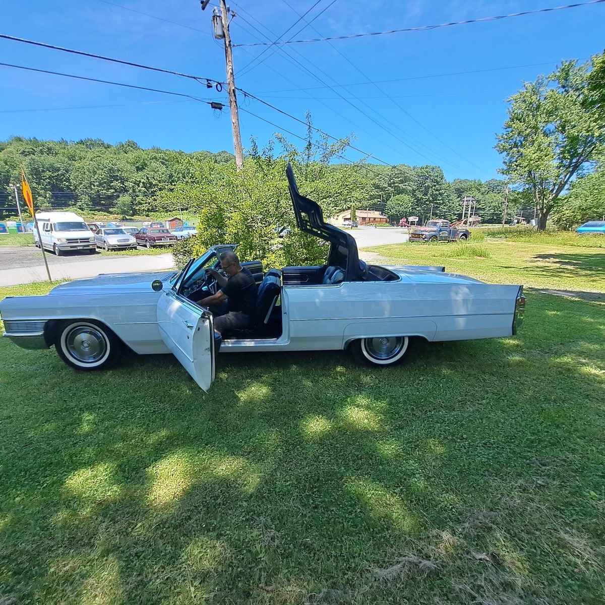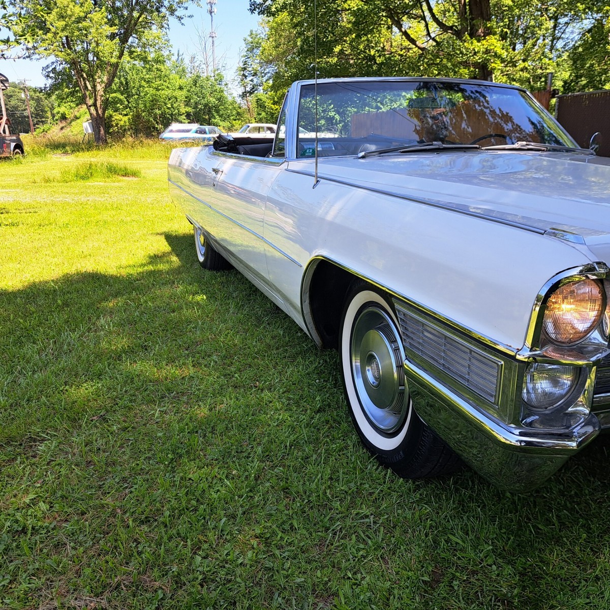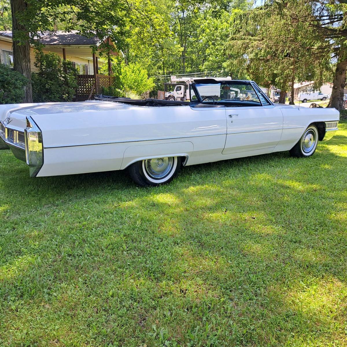 This is a Stunning 1965 Cadillac Coupe DeVille Convertible with 38K Miles, This is a 1 owner California car, white with a black original Top and Black leather. It has lived its entire life in California, we acquired the car some months back from the originalowner who was a retired Doctor. As you can see in the photos it still has its CA plates and was last on the road in 1982. It was stored in a dryclimate controlledgarage. The doctor only used the car sparingly for pleasure. We have since serviced and completely gone through the car top to bottom tobring it back to an everyday driver If wanted. As you will see in all the pictures and full description we have done everything to this car mechanically it is completely done. All brakes, fluid service, tires, battery and of course any suspension components that look dry were replaced just for an example. Please read theentire listing for a full description of all work done.As stated above the car was stored since 1982 and has since been completely gone through service wise. The tires are brand new and werereplaced while the car was on the lift for the undercarriage photos, if you see the photos you will see the originalbias tires werestill on the car during the photos. All the brakes have been done, All fresh brake hoses,wheel cylinders, spark plugs, wires,cap and rotor. All fluids replaced including the rear differential. Coolant has been replaced and also has a new thermostat along with hoses. New updated aluminumradiator.The transmission has also been serviced and has fresh fluid and a new filter. The carburetor has been gone through as well. The fuel tank was removed and cleaned along with a new sendingunit. The suspension bushings control arms and everything has been thoroughly checked and serviced as needed. There are many small things I am not sure I am forgetting to mention. But this car really is that nice. Even the originalam/fm radio still workCosmetic- The paint on this car shines beautifully and has been polished and sealed, absolutely no dents, dings, really nothing negative to say at all, very minimal blemishes if any.I think you would be hard pressed to find another 1965 in this condition. . The interior is in nice condition as you can see in all the photos. Thecarpets are perfect as well,and no cracks at all on the dash. normal age minor wear on seats as you can see in photos,but again one of the nicest 1965s I have seen . The steering wheel is in great shape, no wearat all. The Frame is 100% rust free and all body mounts are perfect and notrusted or rotted at all. It is very common on thesecadillacs for the rear body mounts to rust and these are like new. We are a classic car and hot rod shop and deal with these Cadillacs all the time. This is one of the nicest I've come across. All the usualspots of the trunk that go bad in these cars are 100% perfect like factory, all original panels are intact and in nice condition. The car has the original factory Spare and Jack. The original undercoating was preserved and cleaned and dressed. I cannot say enough how nice this car is. The car is stock with the exception of some cosmetic exhaust upgrade done many years ago and is really not much louder than stock. The convertible top is solidand not leaking at all and of course has the originalglass back window.. The bright work is in Great condition.All the electronics are perfect. windows work perfectly fine, no issues whatsoever. The power top works perfectly with the hit of the switch. The car has the full original spare jack in the trunk. The car runs and drives great! Truly a dream to drive. Here's a chance to own an absolutely stunning beautiful car with a very desirable color combination. I'm sure if you were a fan of these Cadillacs particularly these year ranges are getting harder and harder to find and are going up in value. Finding somethingin this condition is a hard task to say the least.-Payment- The only payment methods will be cash in person. Wire-bank transfer or certified bank check. If paying with a check it will need to be fully cleared prior to release of car or title. Please know that can take over a week sometimes. Sorry no escrow service of any kind or ebay check out. I can not release the car until full payment is cleared. Thank you for understanding.Shipping- if you need any assistance in shifting I'd be more than happy to help, I can help you get a great door to door rate and set it up for you if you'd like. We are a classic car shop and ship customers cars in and out all the time.***Please if you are a serous buyer its best to call. I will not accept an offer without speaking on the phone first. Sometimes people just make offers for fun and have no intentions on buying. I hope all buyers understand. I just would like to have all details worked out prior. Thank you*PLEASE serious buyers call 570-234-05 87*