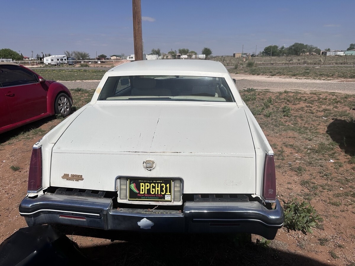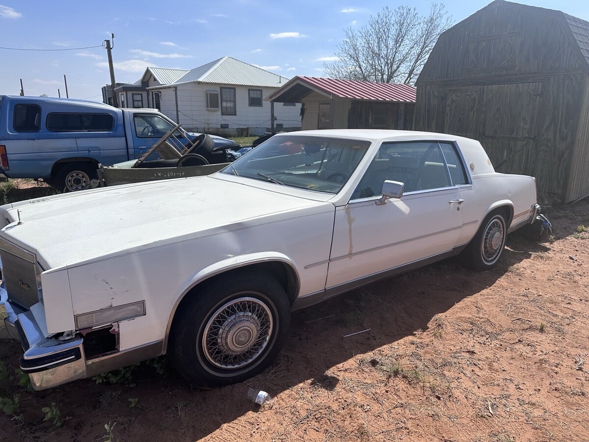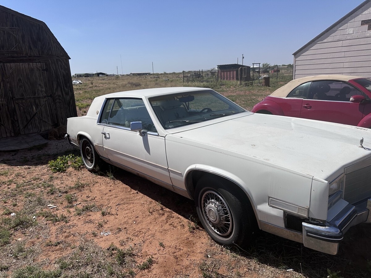 White 1985 Cadillac Eldorado Commemorative Edition. Car runs and drives but needs some work to keep it in running condition. Has a decent amount of issues but someone who is or has a decent mechanic could probably fix them all.