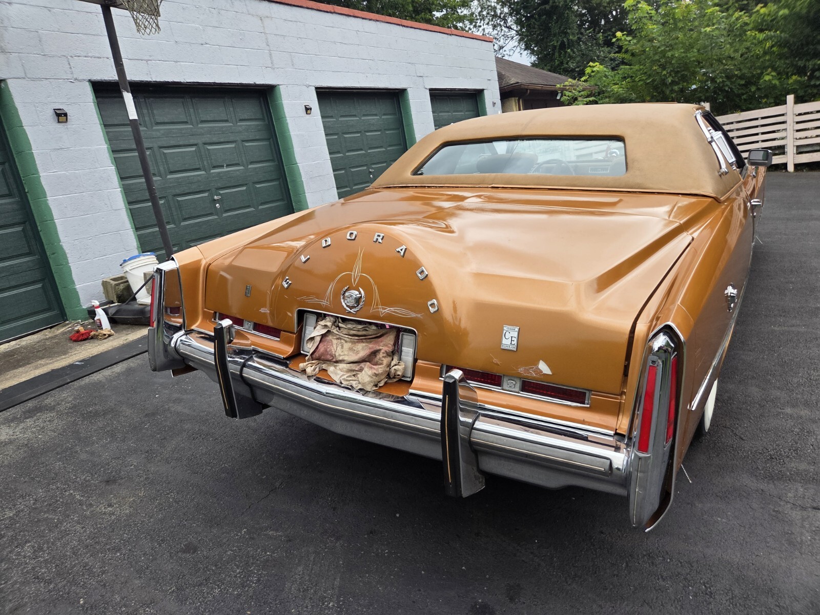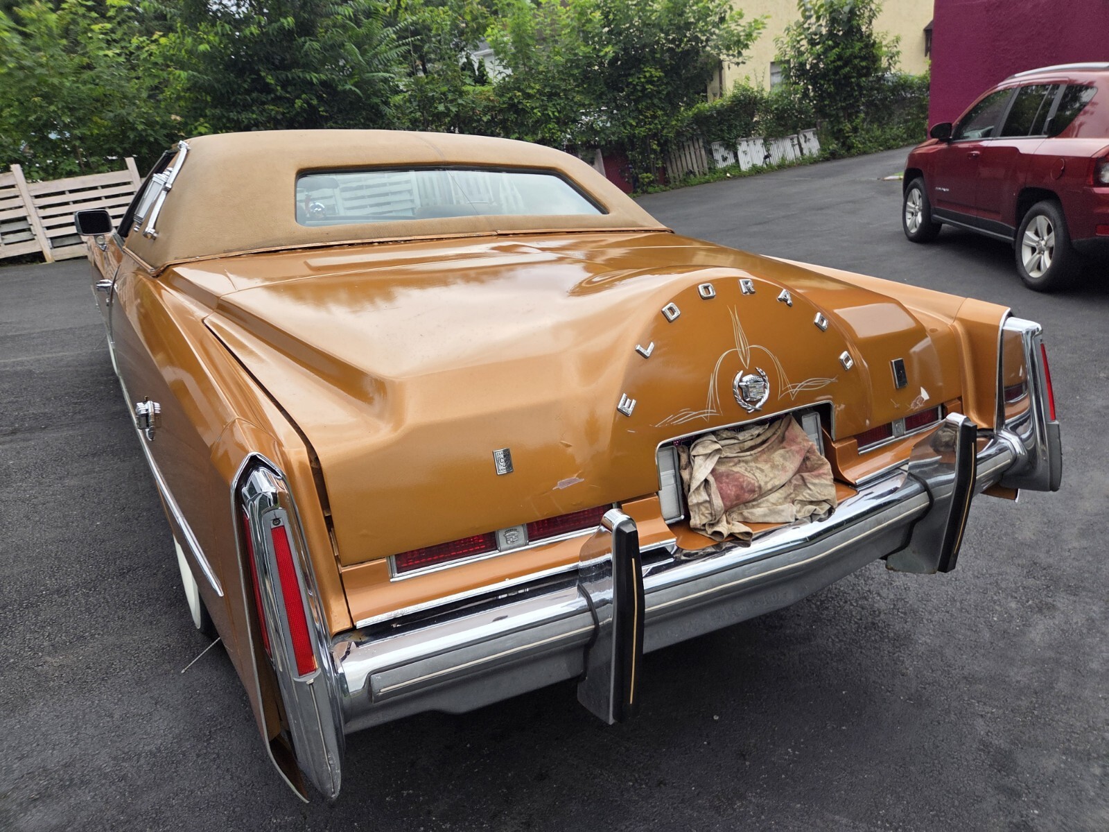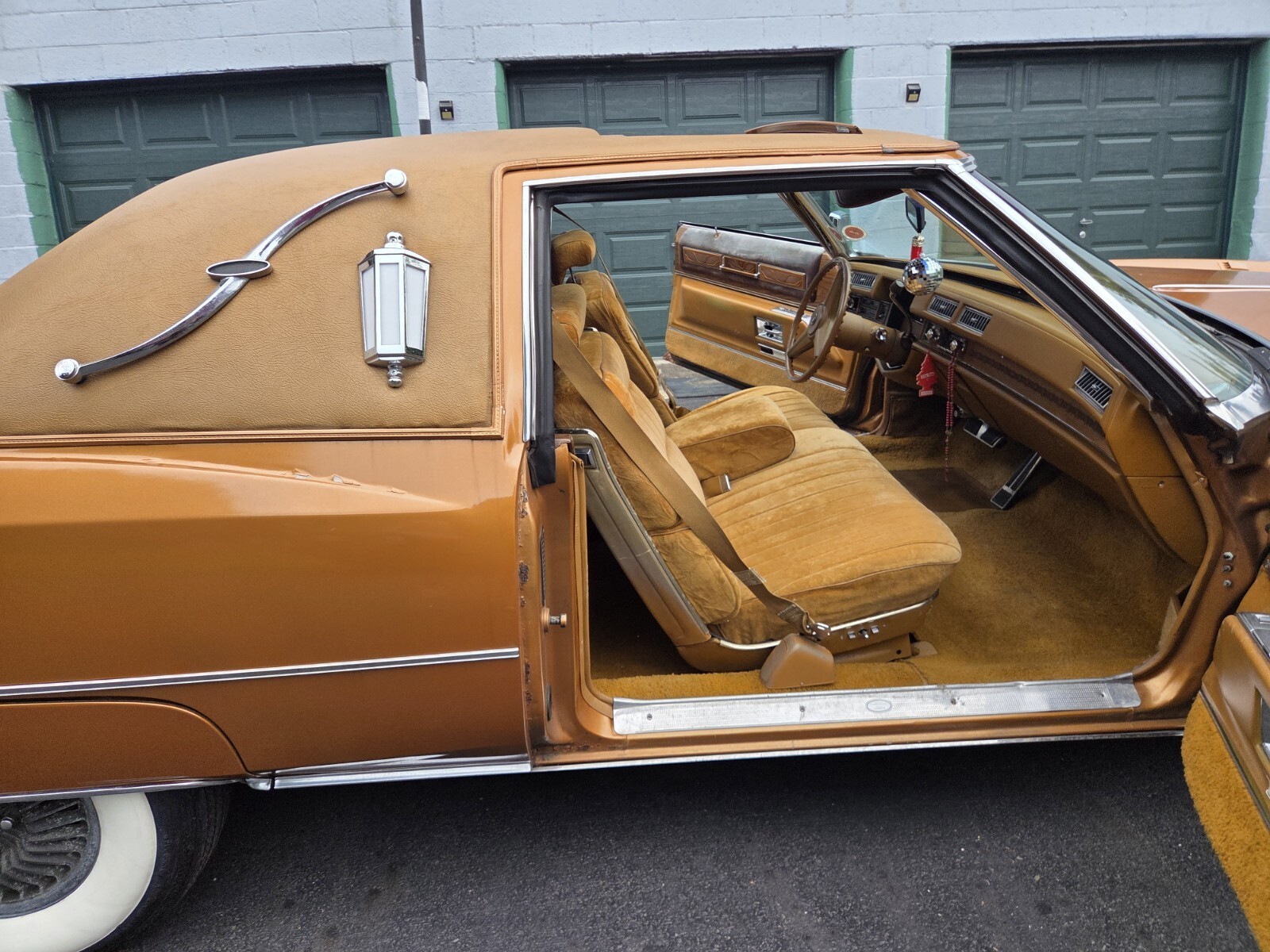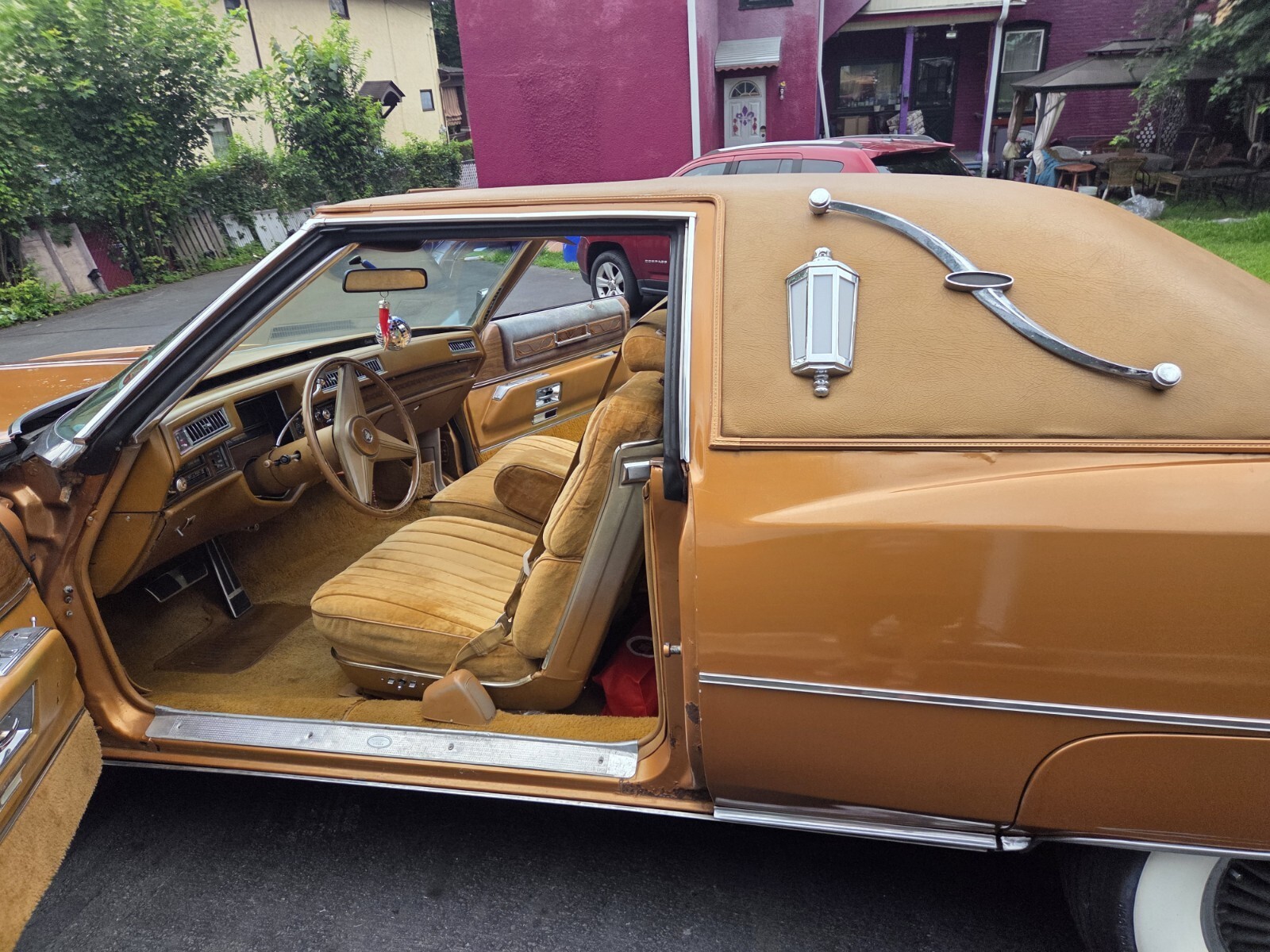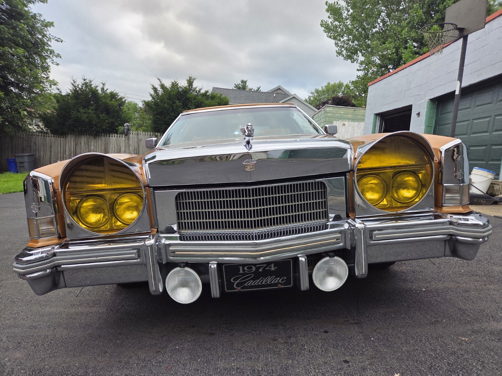 74 Eldorado built by Moloney Coachbuilders of Illinois, Superfly headlights were added, big chrome hood cap, fog lights, curb feelers, 4 inch Coker whitewalls, Rocket aluminum wheels, rear air shocks, new starter, new battery, runs great only 38,500 miles, trunk hump, landau bars, limousine style side opera lamps, working power sunroof, velour interior, glides down the road, not perfect, some scratches, dents, and rust but not bad considering 51 years old, rechromed front fender extensions, 500 engine, goes anywhere, been to PA, NJ, NY car shows, also has a siren pimpmobile