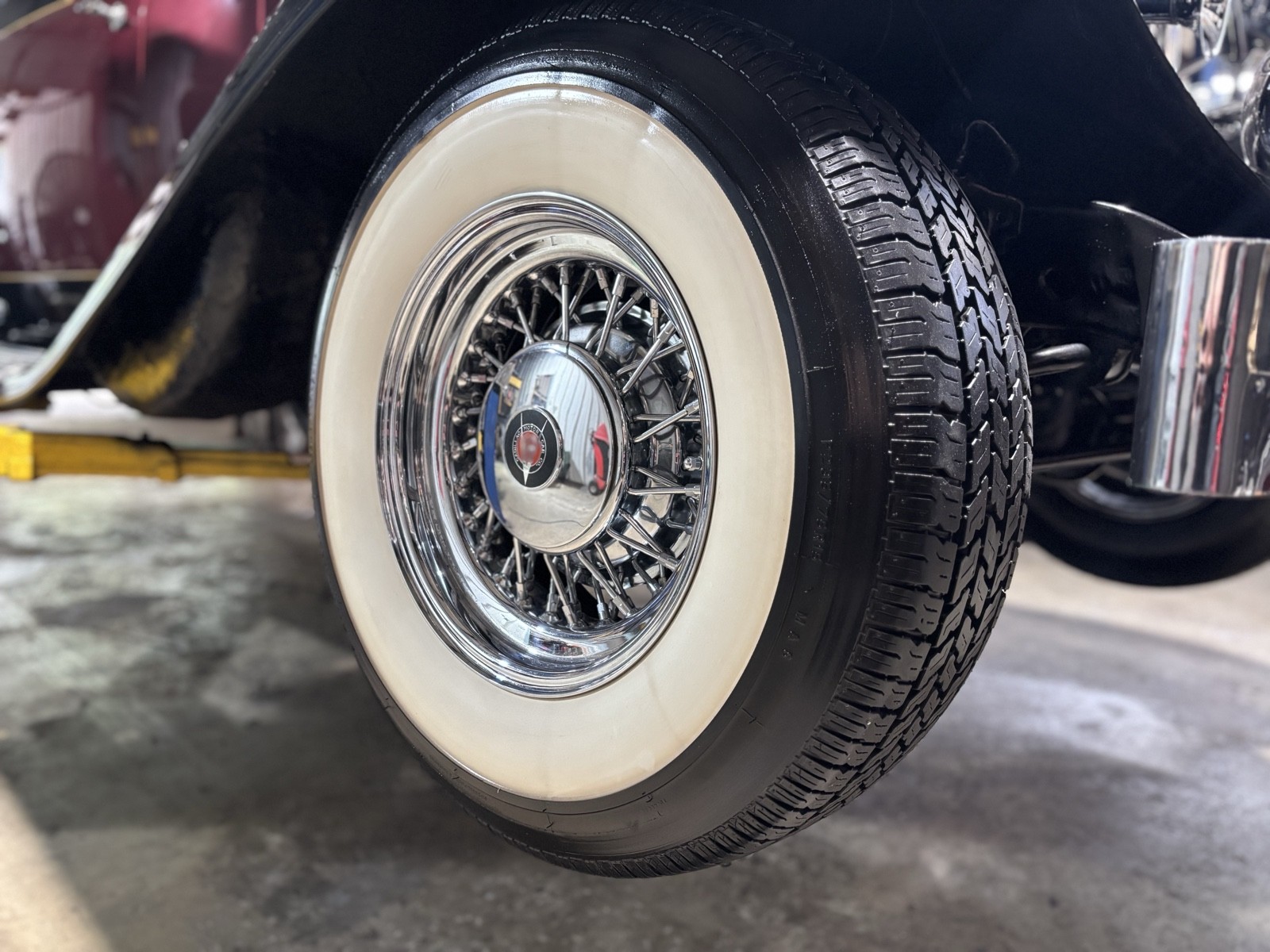 Kelsey Hayes chrome wire wheels with Coker wide white wall radial tires.