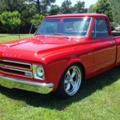 1976 Squareboby c10 Stepside Pickup.This is truly a one-of-a-kind truck! Designed, fabricated and finished by celebrity designer, Tim McClellan, of Ellen's Design Challenge, this pickup is a dream ride. Tim is known for his originality and attention to detail. The custom paint is airbrushed and textured to look like warn saddle leather and has an extraordinarily rich patina protected by 3 layers of satin clearcoat finish. It is a real showstopper and always draws major attention wherever it goes. This Cowboy Custom build is powered by a small block V8 Chevy engine with an automatic transmission and features a whole stable of brand new parts including; new headers that feed a new dual exhaust system, a new Holly carb, new power steering gear box, new cooling system w a new radiator, new tires, 2" front drop spindles w disc brakes and a rear leaf flip that gives this pony a super cool stance. It is easy to see that this was never a "work" truck by the fact that the bed is in near perfect shape w fresh Rhino lining and new blacked out bed floor. This is an Arizona truck that had no rust and very, very few dings (which of course where fixed prior to paint). Tim approached the interior with an eye for the cowboy in us all. This totally unique cabin includes a fresh dashboard with a handcrafted American walnut inlay, a leather wrapped roller-chain steering wheel with walnut accents, hand stitched leather door panels, leather and walnut arm rests, hand stitched leather visors, Rhino lined interior floor pan and a King Ranch saddle leather split bench seat. This is a truck that was made to drive! It is ready to bring countless miles of pleasure to its new owner. Not a Hot Rod, Not a Rat Rod. This is one unique Ranch Rod! The first Cowboy Customs Rawhide Ranch Rod. Yippee Ki Yay!