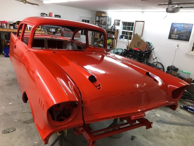 I have a really nice 57 Chevy 150 2 dr sedan bodyrust free all original floors, has vintage air, rain gearwipers, idiot tilt column, has new gas tank. TheFrame has had a rbs front clip put on with powersteering and has power booster and master cylinderUnder the floor, 4 wheel disc brakes, narrow 9 inchFord rearend 355 post from Randy's ring and gear,Front and rear sway bars. The rest wheel wells havehave been moved in two inches mini rubbed.What parts you see in the pictures is all I have pleasefeel free to call me at 540-556-5557 with anyquestions thanksVehicle Details: