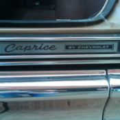 The black paint looks to be fairly recent. It shows very well with good shine. There are a few small rock chips on the front of the steel cowl induction hood, but no major dents or scratches. The body seems to be very solid with no signs of rust. The SS wheels and white letter tires are brand new. The windows are crack free and roll up and down without any fuss.