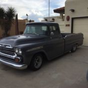 Suspension Details - 1956 Chevy Truck straight axle and steering box, urethane body mounts, new shocks, springs and ladder bars. The frame has been X'ed for increased rigidity. 4 wheel disc brakes. Front wheels are ET 10 spoke 15x4 with new 5.60-15 Firestone tires, Rear wheels are American Racing Torque Thrust 15x10 with Retro Kelly Charger N50's Tires.
