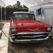 The interior of this vehicle is very complete and is in great condition. The bench seat is covered in multi-color cloth with red vinyl accents, the seat is in excellent shape and is very comfortable. The door panels are in good shape. All interior hardware is in tact and in good shape. The dash is in great shape with easy to read gauges and slick paint. Overall the interior is complete and in great shape as can be seen in the pictures.