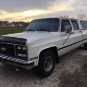 I found this truck at a farm where they were tearing down the buildings to make more room for planting. Inside what used to be the blacksmith shop sat this truck (see photo). It is a 1 owner 1950 chevrolet 3800 dually with 51k original miles on it. this truck is 99% rust free. Has 3 small areas of rust. 1st, the emblem on the hood has a rust hole on the right side, the drivers cab corner has an area about the size of a silver dollar, and the passenger floor board has an area the size of a quarter by your right foot butting up to the door frame. The under side of the truck has no rust at all. No rust under the body or the bed as you can see by the pics. He had drained the fuel years back to winterize it and it helped a ton. fast forward to last weekend. we drained the fuel that was in the line, cleaned the points, hooked up a new battery and it fired right up. Bled the brakes and they are at the top. all 4 gears and clutch seems to work great. New tires back in 1976 ( CO_OP brand). Front tires are weather cracked but hold air and no slow leaks. Interior needs completely redone as far as seat and headliner. All gauges work correctly. some lights work including the dome light when you open the door. Some bulbs are burned out. The body has a couple dents but is super straight other than that. The paint is actually under the 42 years of barn dripping moisture but i thought i would let it be, seemed to take on a rustic look. If you want other pics, or a video of it running and driving just give a call or message me and i will send you what you need. I tried getting a lot of the shots under the truck to show how straight and rust free it is. All glass is good and crack free. There is one small chip in the drivers window but it is small. Has 3 fold up 1950 road triangles that came with ( see photos). The banner in the photos does not go with the truck. It was under the seat and was hung off the side of the truck during the parade.Vehicle Details:
