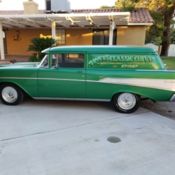 This 2-Door Sedan has been tastefully customized in late hot-rodder fashion; complete with a striking paint job and lightly modified with modern creature comforts. The exterior was painted in two tone base-clear silver and turquoise with a forward motion black and silver stripe as the line break between the two colors. With all of the exterior handles being “shaved,” meaning they were removed and filled, he beautiful lines of this car are highlighted perfectly with the custom paint. Overall the body panels are in great condition, nly minor flaws can be found under close examination. New steel rally style wheels have been painted to match the exterior silver paint and Chevrolet chrome wheel covers finish the look. Both front and rear bumpers have been painted exterior color silver as well. Halo Lights have replaced the original headlights and provide a more modern look to the car when cruising on the street.