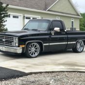 Body: Taken off of the frame and repaired. Cab corners and floor pan replaced where needed. New drivers door, all fenders replaced, bumpers,front bed panel and tailgate are new. All hardware was replaced with stainless steel bolts. Bed wood is Bird’s Eye Maple with all new stainless steel bed strips. The inside of the bed was coated with Herculiner. Blue LED lighting mounted in the grill to give a demonic look when the headlights are on.
