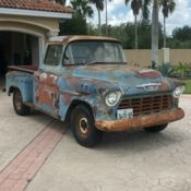 1953 Chevrolet Pickup, LS V8 engine, 4L60E automatic transmission, set on a 1996 S10 chassis, running gear and suspension, front disk brakes, rear drum brakes, new Coyz rims, 18x8 front, 20x10 rear, new tires, power steering, power brakes, solid body with great patina, custom hood cut-outs, all glass and glass rubber is new, door locks and door rubber is new, door panels are imitation ostrich skin, interior antler door handles and shifter handle, new seat-belts, Jack Daniels radiator overflow bottle, vintage two-man saw spoiler, Dolphin gauges, ez wiring harness, all lights, high-beams, turn signals work, dual exhaust gives it a nice throaty sound, new wood bed, cab floor and doors are solid, original wiper components seem to be under dash but wiper motor not working. Couple of bullet holes on the hood, front passenger fender and rear of cab behind the driver as shown in the pictures. The truck is a real attention getter and draws a crowd at all shows. Drives great and is extremely fast. Smooth and straight on the highway at 75-80 mph. All around the truck is in great shape. A couple of videos of the truck running have been added for your reference. Clean Florida title in my name. Front New Mexico tag is not included in the sale.