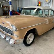 Has a 350 engine and transmission, 4 Barrel CarbNew interiorNew exhaustNew gas tankNew tires and rimsNew batterySounds great with side pipesGood cruiserBrakes are goodSteering is pretty solidAutomatic Lots of recent receipts totaling 15K, a lot more investedTitled as a 1955 ChevyCurrent California RegistrationLicense Plates are glued onNO TOPSOLD AS ISAs you would expect you get TONS of looks and thumbs up