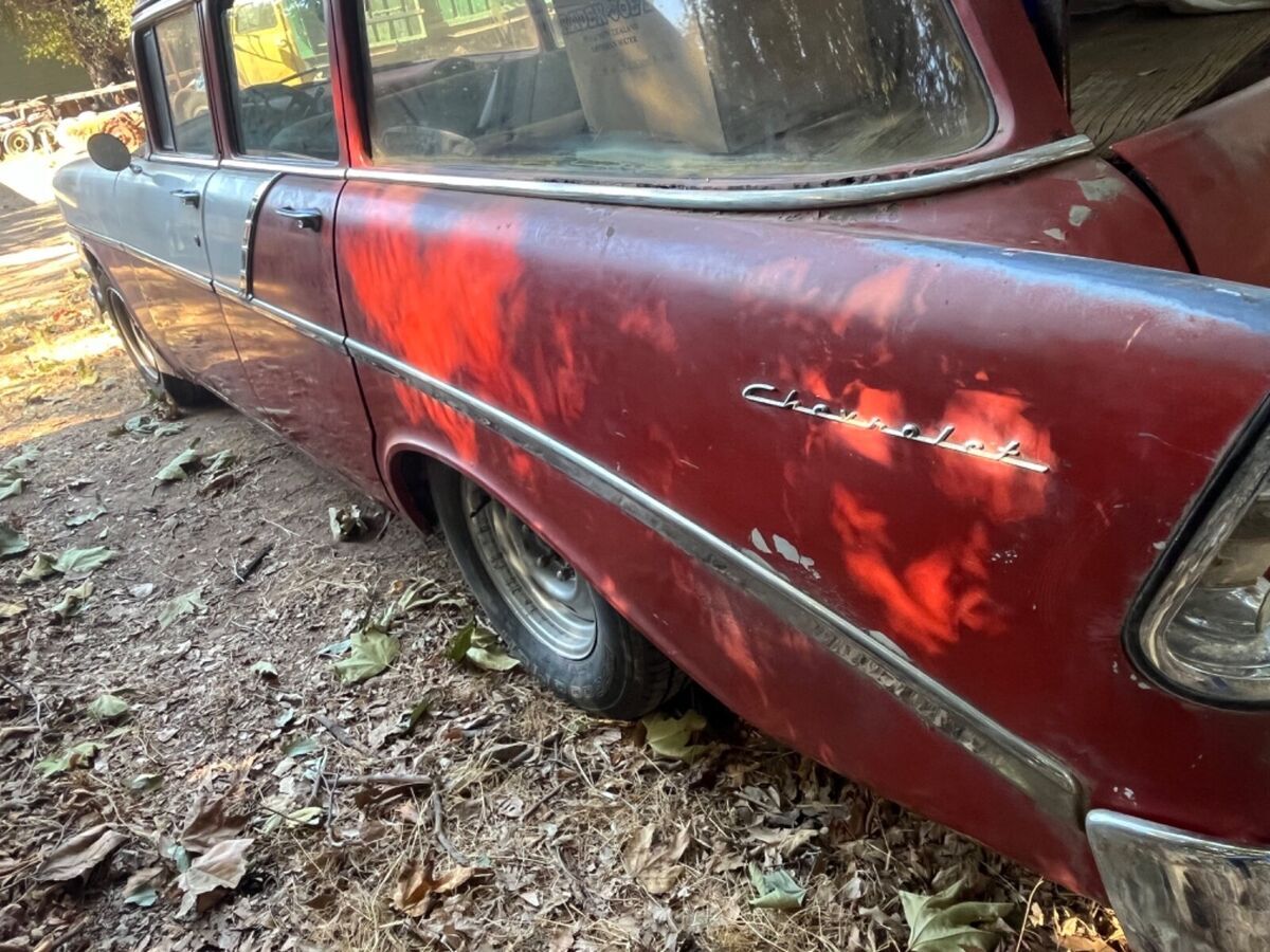 They are still out there, as shown by this running driving solid 1956 Chevrolet 210 4 door station wagon.Sitting in a barn yard for close to 20 years, this old school Chevy has a Camaro fuelie head 4 barrel dual exhaust 327 backed by a 3 speed turboshifting from a tilt Chevy columnFront disc brakes/rear drumsNew brake master/booster/proportioningvalve.New 17 gallon fuel tankRebuilt QuadrajetOil change and tuneupGood glass all aroundWindows and doors operate and fit2-1968 Nova Rallys/tires on the rear2-70’s universal wires on the front with 2 spare wires included.There are areas in the floor pan that would benefit front restoration.There are areas in the upper body where rust repair would be beneficial but not necessary.There are 2 dents in this wagon that I personally would leave. The wagon is laser straight.I have replacement struts for the upper tailgateThis is a very cool car that I plan to make as a daily driver and left completely AS IS, only super clean!The wagon was originally crocus(yellow green) as seen in the engine bay.The complete under carriage and engine bay even under the hood was undercoated. Look close and you will see the coating is starting to come offThankfully the car is dry as a result of the undercoating, but ugly.Great machine that gets better every day.Titled and licensed in my nameThanks for checking it out