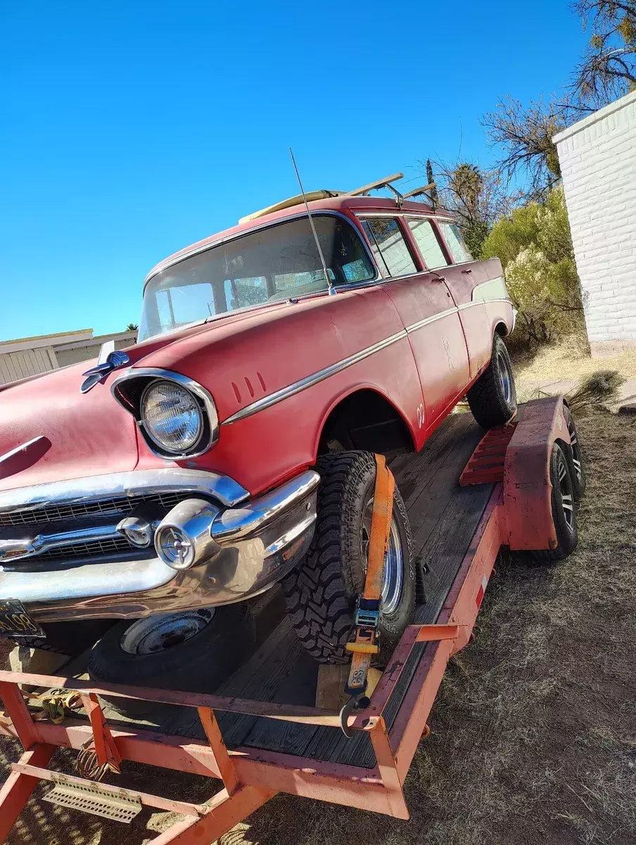 1957 Chevrolet 4 doors station wagon. Engine is a 350 married to a 3 speed standard transmission.