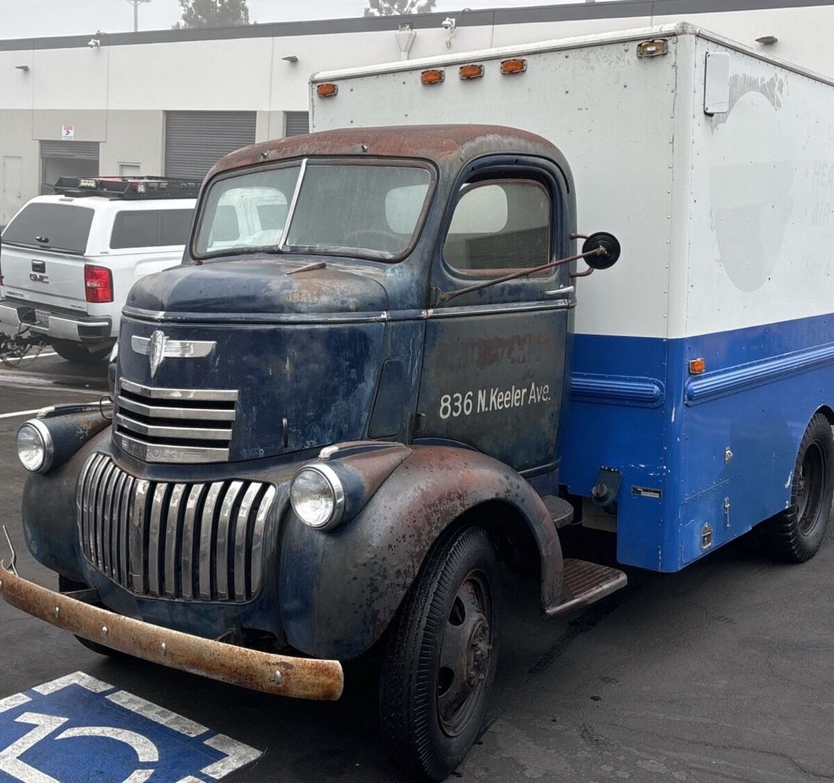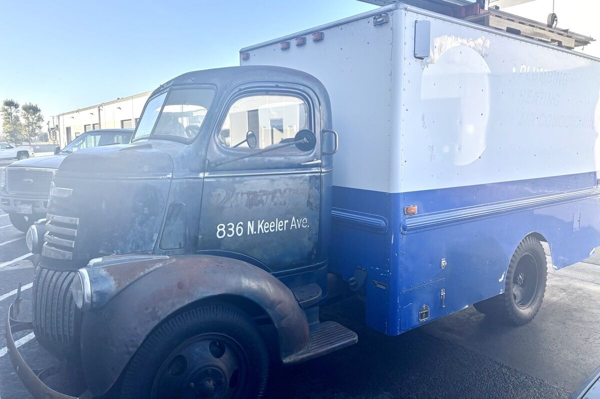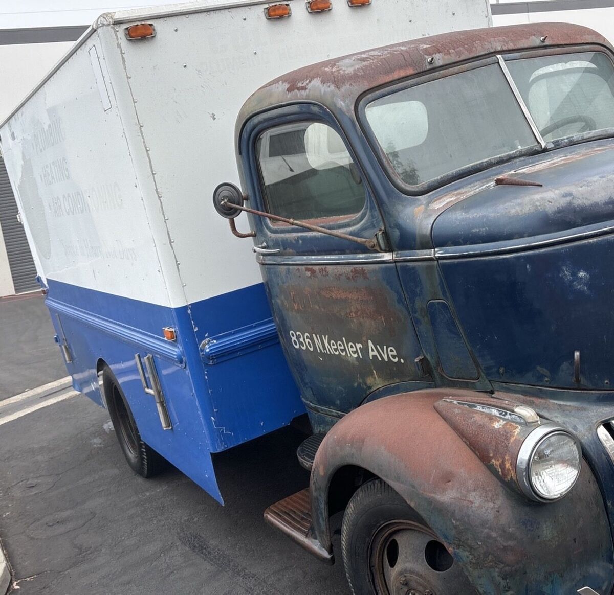 Chevrolet 1941 Cab over Engin, with added 12ft aluminum plumbers box.